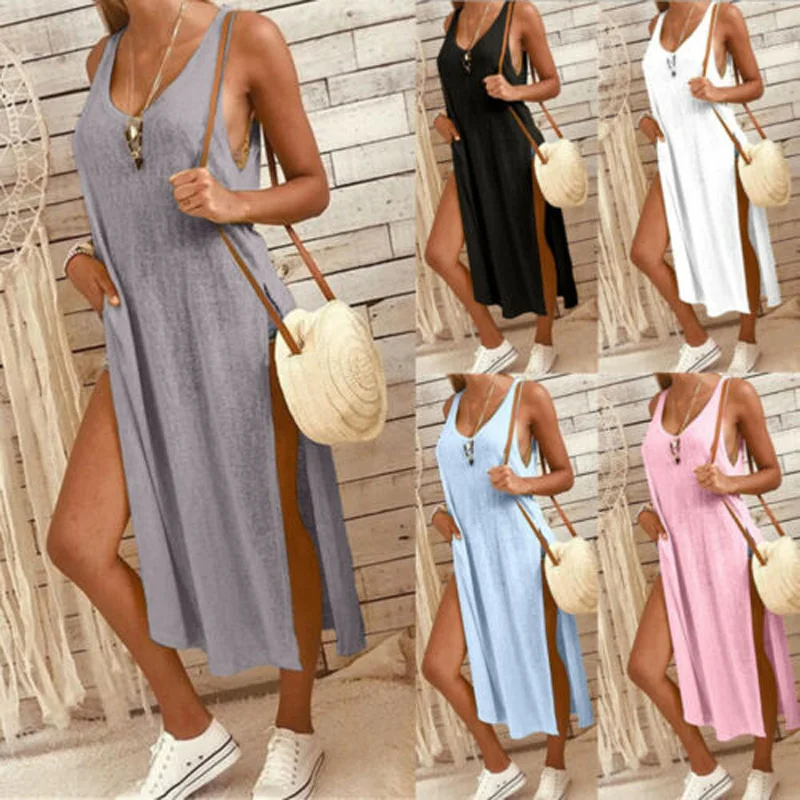 Стиль: однотонный топ на бретеляхПлатье с длинным разрезом