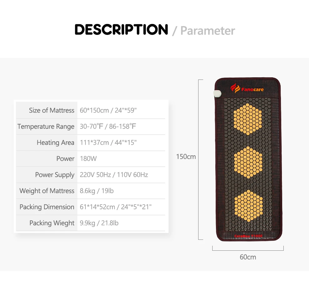 Когда матрас подключен, он создает постоянный поток тепла, который окружает вас. Природный аметист выделяет много дальнего инфракрасного излучения. Турмалин выпускает отрицательные ионы через замшевую ткань. Длительное его использование способно способствовать циркуляции крови и ускорить обмен веществ, повышению иммунитета, Уменьшить воспаления и убивать бактерии, лечить различные хронические заболевания, снять давление, снимают физическую усталость и улучшают качество сна.