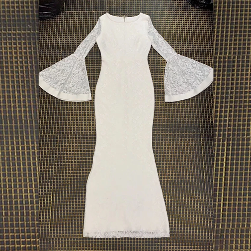 Женское кружевное Бандажное платье с длинным рукавом, длинное белое вечернее платье знаменитости, оптовая продажа, лето 2019