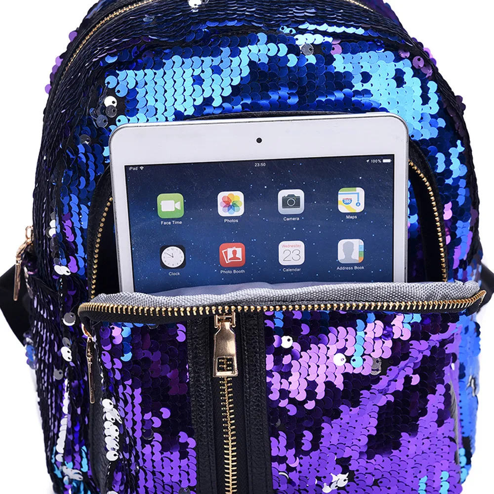 Модный школьный рюкзак с блестками для девочек, дорожная сумка через плечо + клатч-кошелек