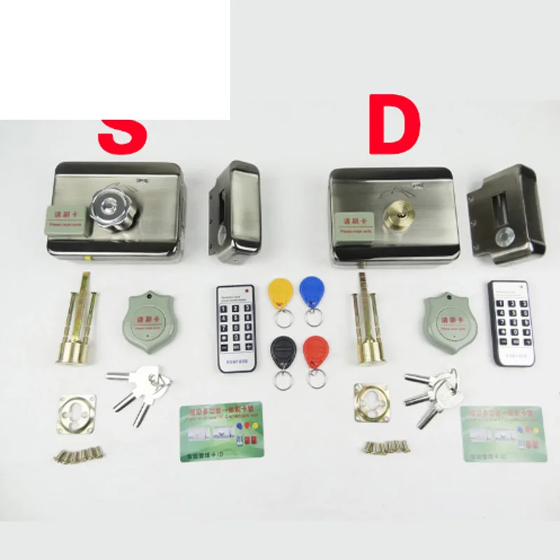 D = внутри используется металлический ключ, откройте дверь, и снаружи используйте металлический ключ, откройте дверь тоже, обе стороны можно использовать RFID считыватель карты доступа открыть дверь.