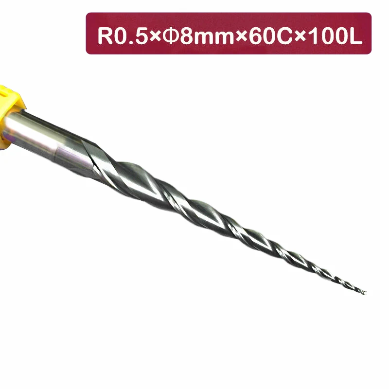 * R0.5 * D8 * 60 * 100L 2 каннелюра с HRC55 коническая кисть с шариковым носиком и Концевая фреза Бит cnc фрезы