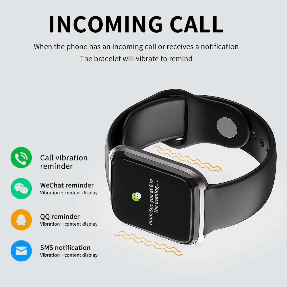 Водонепроницаемый: P67 Материал корпуса часов: пластиковая задняя оболочка и металлическая медельная рама Основной Размер: 43 мм * 36 мм * 13 мм Ремешок для часов из силикагеля Размер: 14 см * 9,7 см Вес нетто: 50 г Аксессуары: основной, ремешок для часов, руководство пользователя, зажим для зарядки