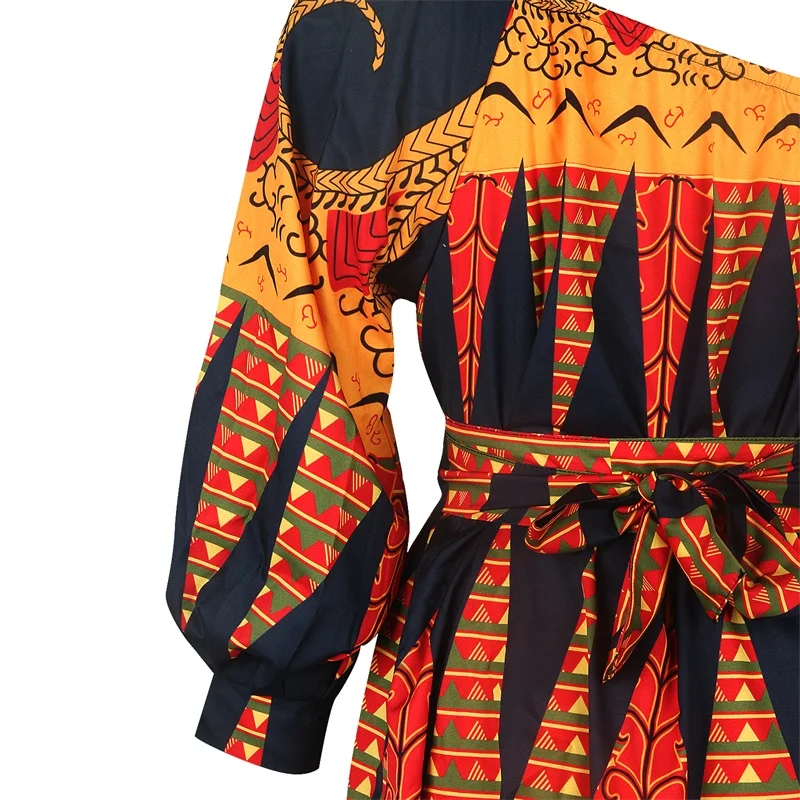 Новое платье Анкары с цветочным принтом, женское свободное платье на одно плечо с пышными рукавами, Бандажное мини платье трапециевидной формы, плиссированное платье, одежда в африканском стиле
