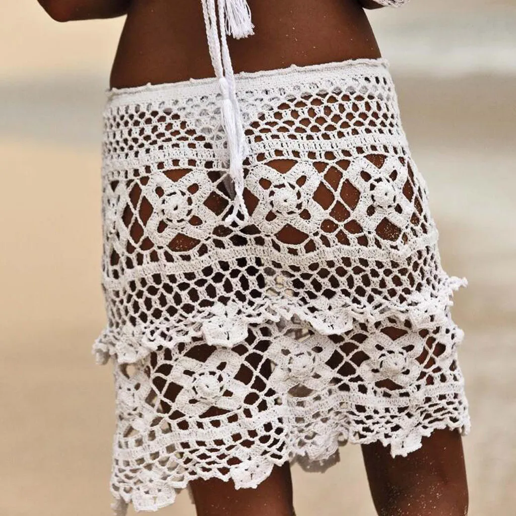 Женская Сексуальная Ажурная трикотажная юбка с запахом, богемная пляжная сумка, бедра юбка
