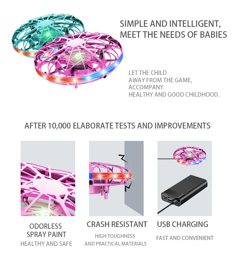 【 Mini drone 】-этот Дрон использует высокотехнологичные инфракрасные датчики движения для обнаружения препятствий и ручного управления ими. Это требует только ваших жестов, чтобы летать и двигаться в любом направлении. FlyNova Flying Spinner-идеальный подарок для ваших друзей и семьи. 【Дизайн безопасности 】-наши ручные воздушные пропеллеры расположены внутри дрона и размещены в детской сферической игрушке-дроне, поэтому родителям не придется беспокоиться о том, что ребенок повредит руку или палец. 【Переключение и вращение на 360 ° 】-летающий шар имеет четыре двигателя питания, которые быстро вращаются и позволяют ему летать на 360 °. Если вы хотите, чтобы он прекратил полет, возьмите мяч и переверните его, чтобы остановить. 【Быстрая зарядка 】-Мини-Дрон имеет встроенный литиевый аккумулятор (включая usb-кабель), который полностью заряжается за 15 минут. Один заряд позволит вам лететь в течение 10 минут, подходит для детских игр на день рождения/праздник/Рождество.