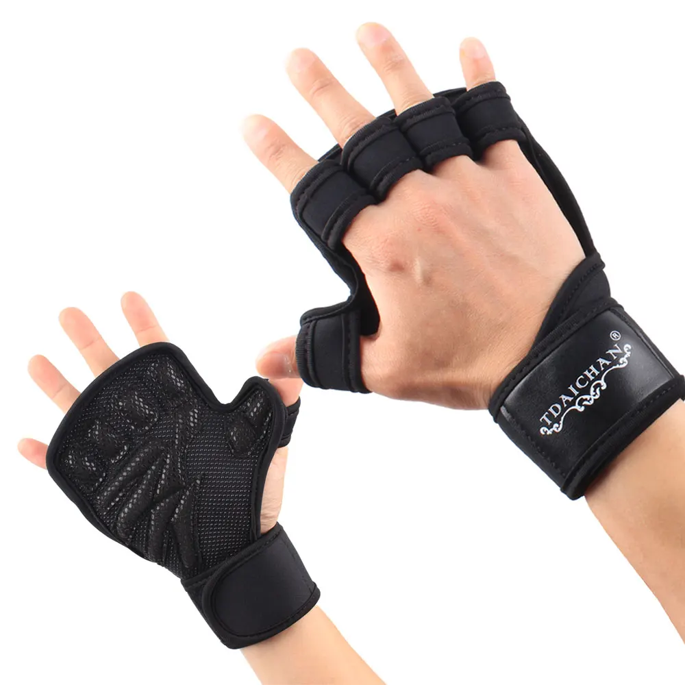 Перчатки для спортзала с защитой рук и ладоней, Перчатки для фитнеса, поддержка запястья, половина пальца, тяжелая атлетика, Кроссфит, гантели, перчатки для пауэрлифтинга