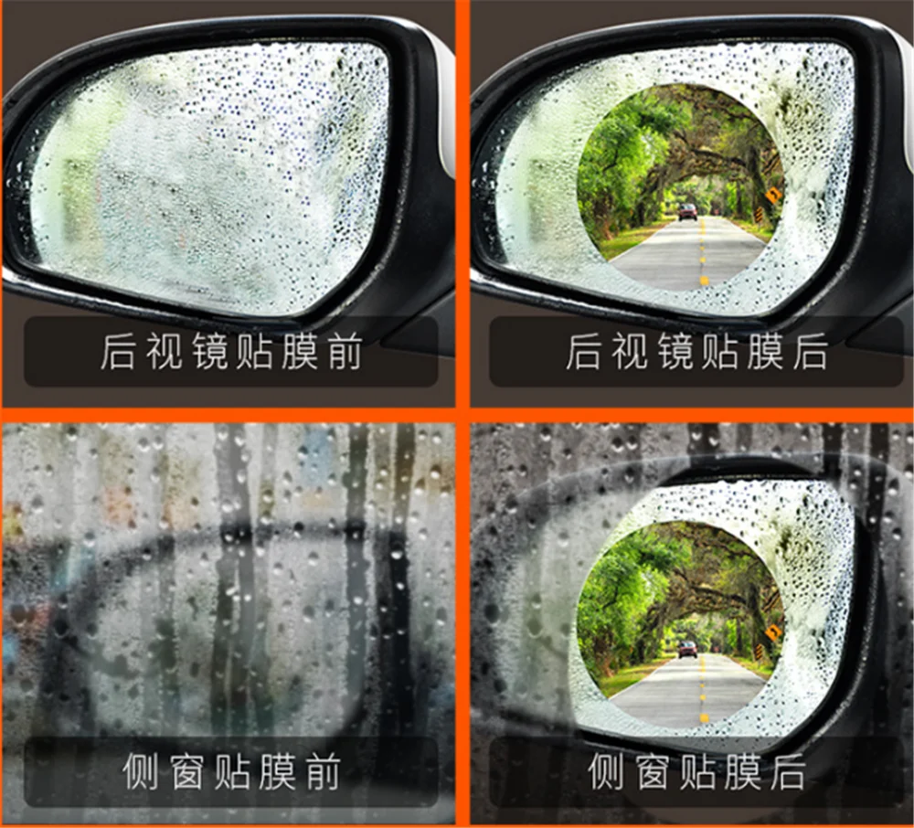 2 шт. Автомобильное зеркало заднего вида, пленка для дождя, боковое окно, HD пленка для затопления, зеркало заднего вида, полный экран, анти-туман, нано водонепроницаемая пленка