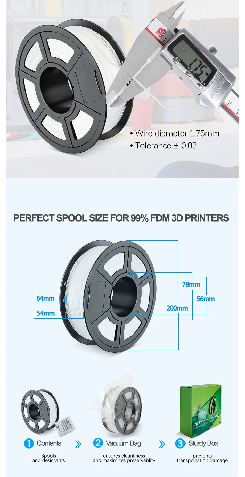 Название: SUNLU PA нейлон 3d нити 1,75 мм 1 кг Диаметр: 1,75 м Допуск: +/-0,02 мм Скорость печати: 50-100 мм/сек. Цвет: переходная цветная нить Рекомендуемая температура печати: 230-260 ℃ Температура платформы: 80-120 ℃ Вес нетто: 1 кг 1,75 мм 3d принтеры нити Вес брутто: 1,3 кг Длина: 1,75 мм (1 кг) = 325 м