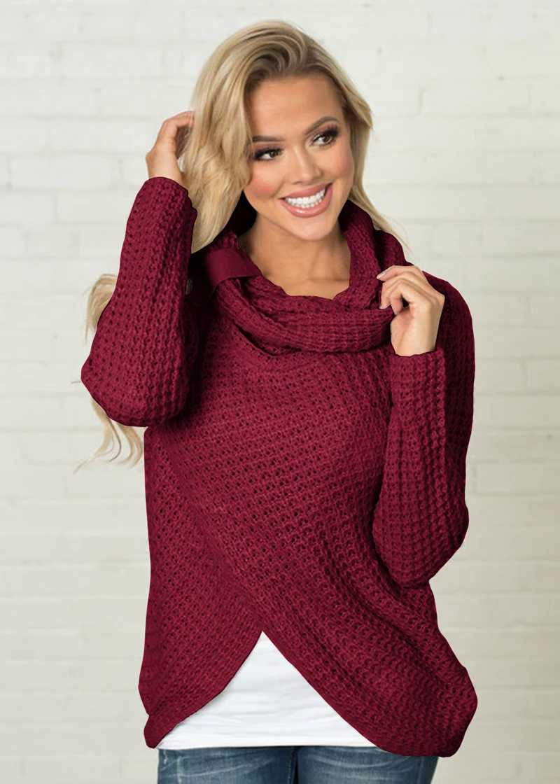 Вязаные женские свитера с длинным рукавом, осенние женские пуловеры, вязаный Асимметричный свитер с пуговицами, большие размеры, топы с воротником-шарфом