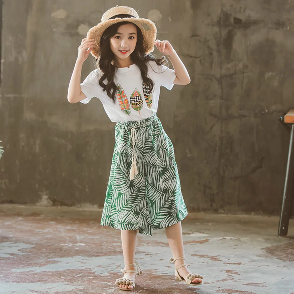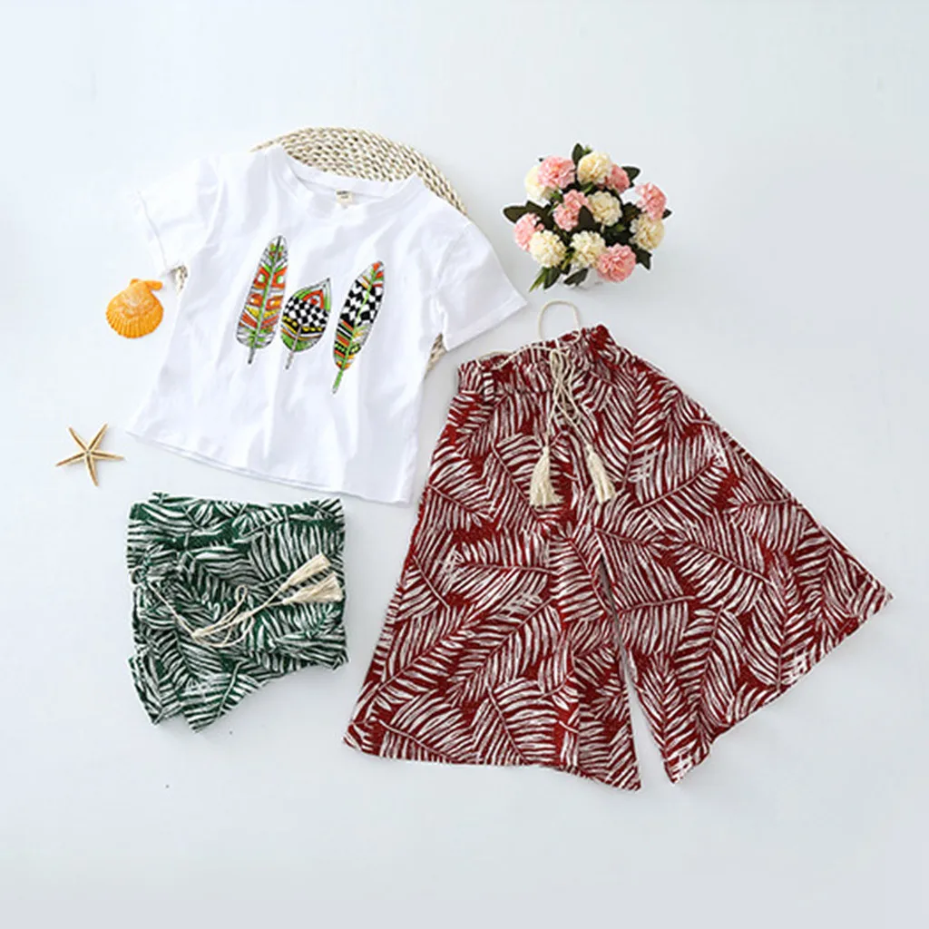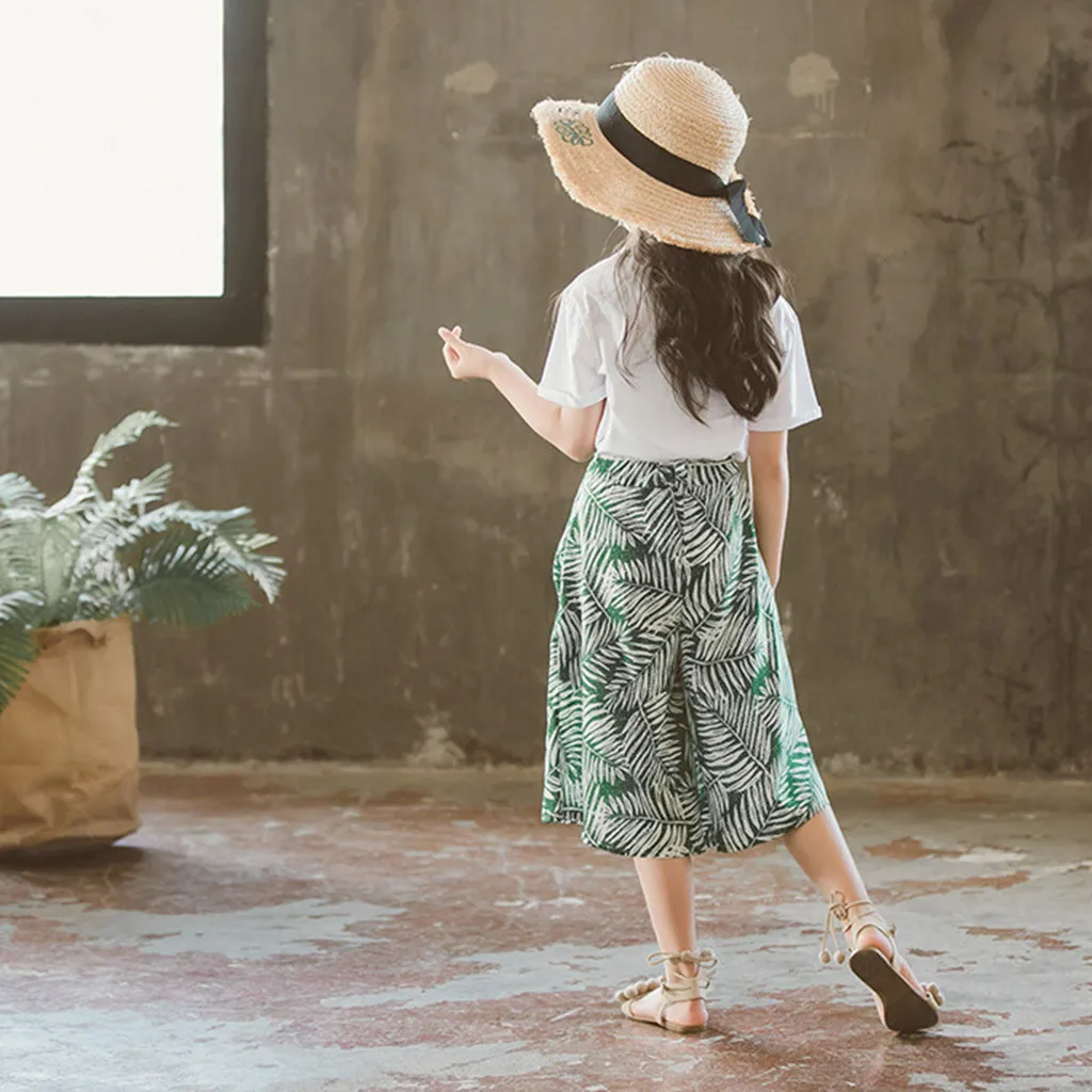Комплект одежды из 2 предметов для маленьких девочек Футболка с принтом комплект из топа и широких штанов