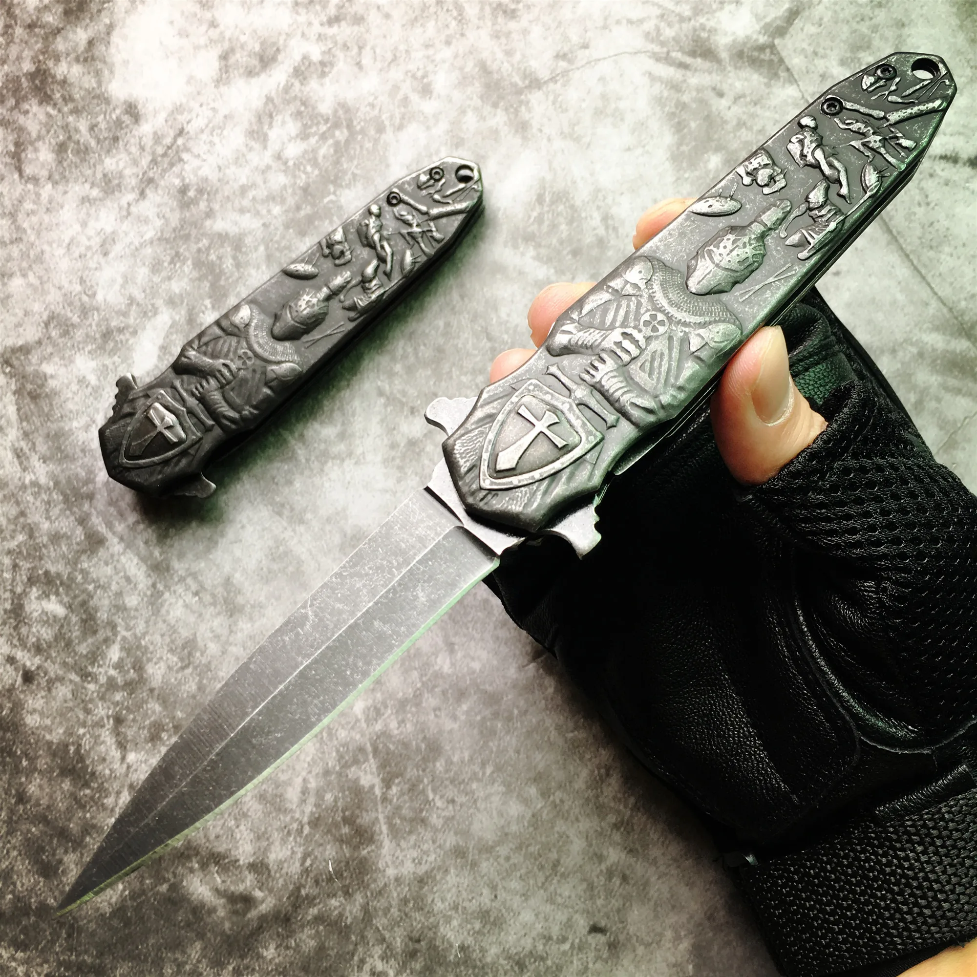 Тип: складной нож Полная длина: 215 мм Длина лезвия: 90 мм Длина ручки: 125 мм Толщина: 2,8 мм Ширина лезвия: 21 мм Лезвие: 440C (с эффектом потертости) Ручка: 3D Противоскользящий рисунок. Уровень защиты: 57HRC Вес нетто: 207 г