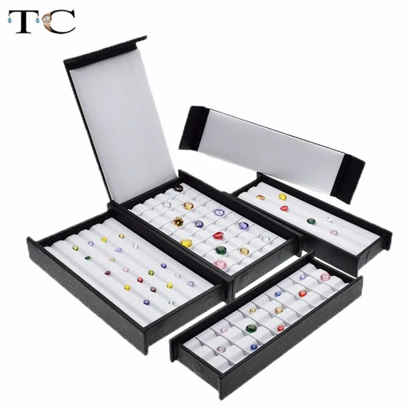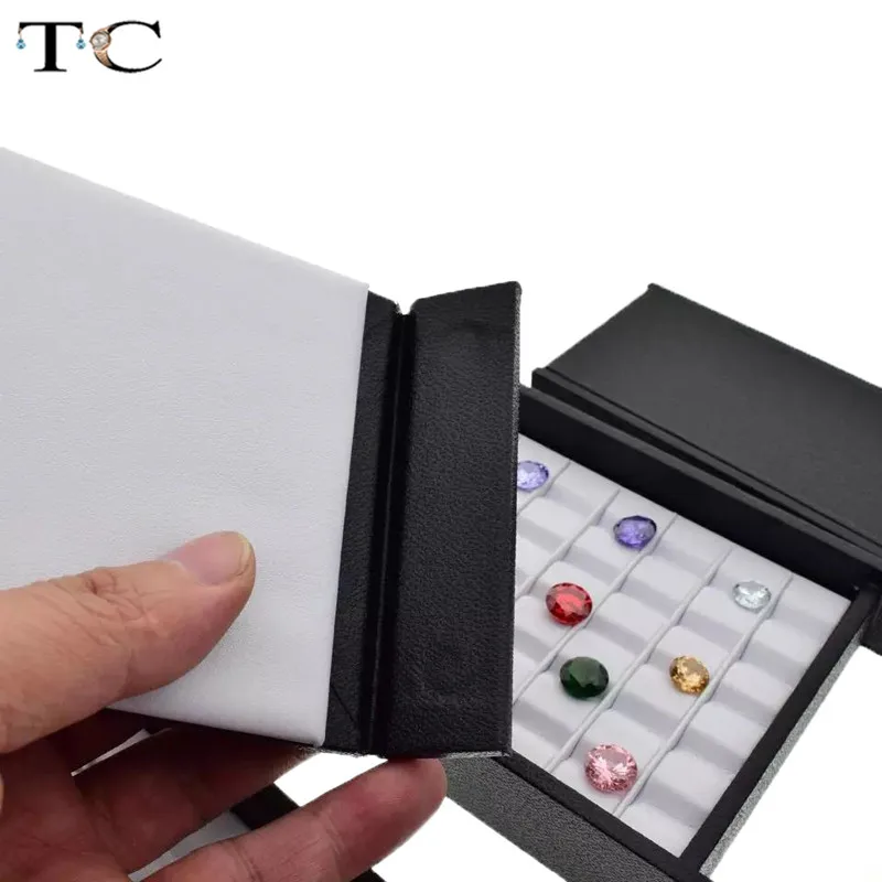 Черный кожаный немой с магнитной крышкой Алмазный Дисплей лоток для хранения камней чехол драгоценный камень коробка ювелирных изделий держатель драгоценный камень Органайзер