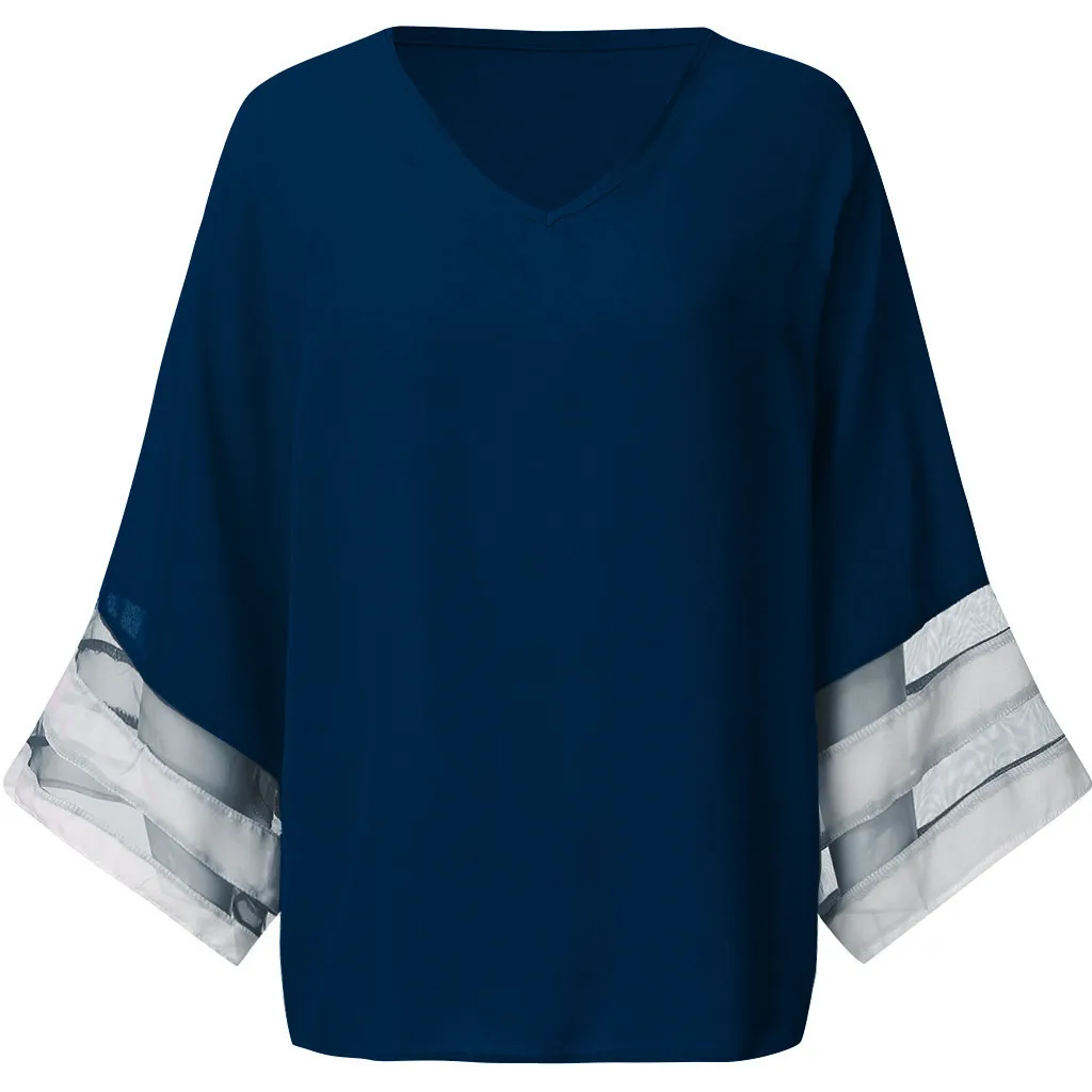 Женская летняя Однотонная рубашка с v-образным вырезом и рукавом-колокольчиком, повседневные свободные топы, блузка