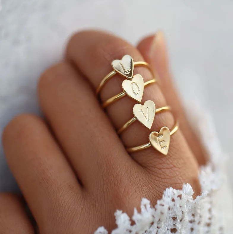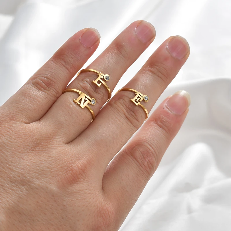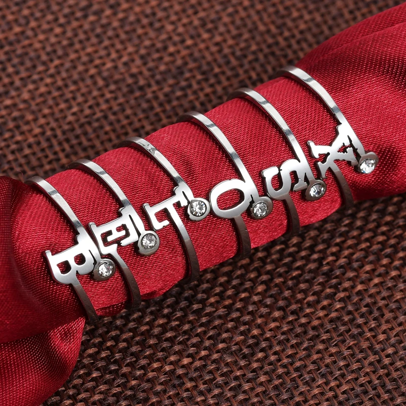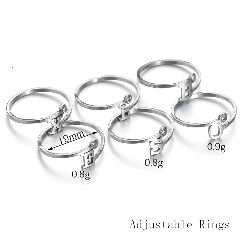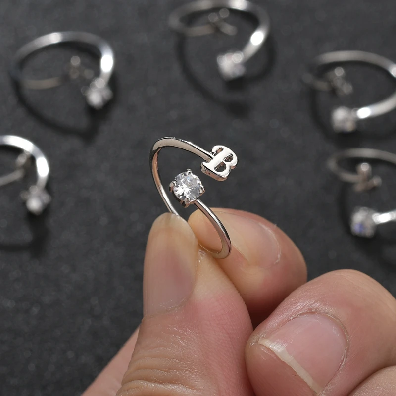 26 первоначальное медное кольцо, липкие стразы, Серебряное открытие, регулируемое кольцо, очаровательные женские и мужские простые кольца с инициалами, лучший день рождения