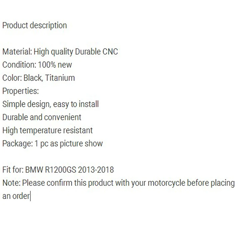 Описание: Состояние: Фирменная Новинка Материал: 304 нержавеющая сталь Количество: 1 Применимость: R1200GS приключение 2004 2005 2006 2007 2008 2009 2010 2011 2012 2013 2014 2015 2016 2017 2018 Фотографии товара