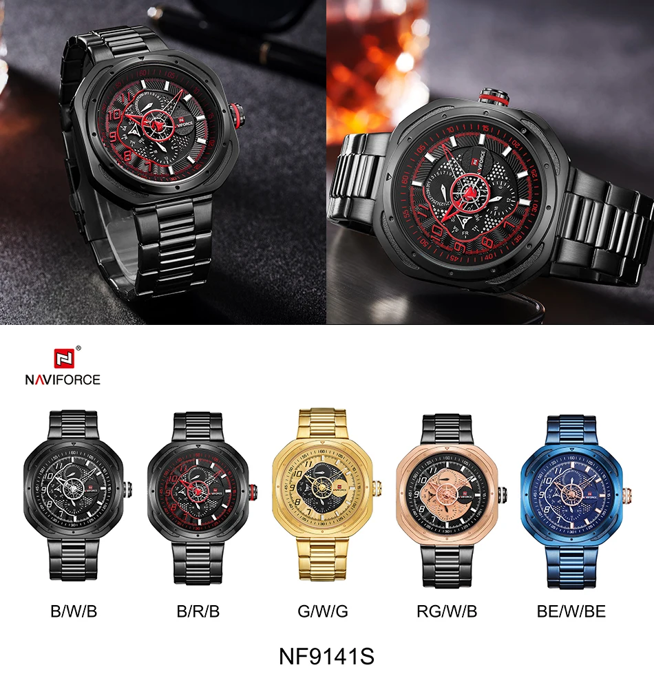 100% новые с бирками и высокое качество Мужские часы для отдыха в армейском стиле Водонепроницаемость (ручная Стирка) Отображение даты недели и 24 часов Высшее качество кожаный ремешок Технические характеристики Материал корпуса: нержавеющая сталь Диаметр корпуса: 45 мм Толщина корпуса: 12 мм Группа Материал: Нержавеющая сталь Длина ремешка: 245 мм (Cse входит в комплект) Ширина ремешка: 24 мм Вес: 153 г Что входит в комплект 100% NAVIFORCE новый бренд 1 x мужские часы для отдыха в армейском стиле