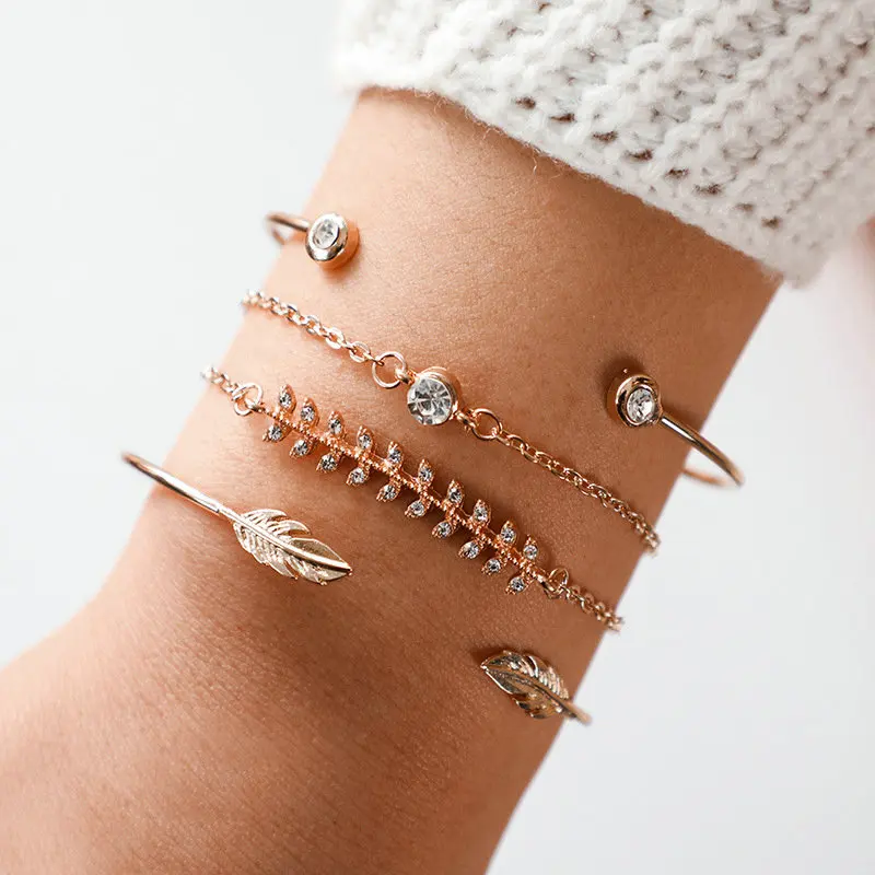 Женские браслеты с подвеской в виде крыльев, золотистые браслеты с крючками, набор из 4 предметов, 2019