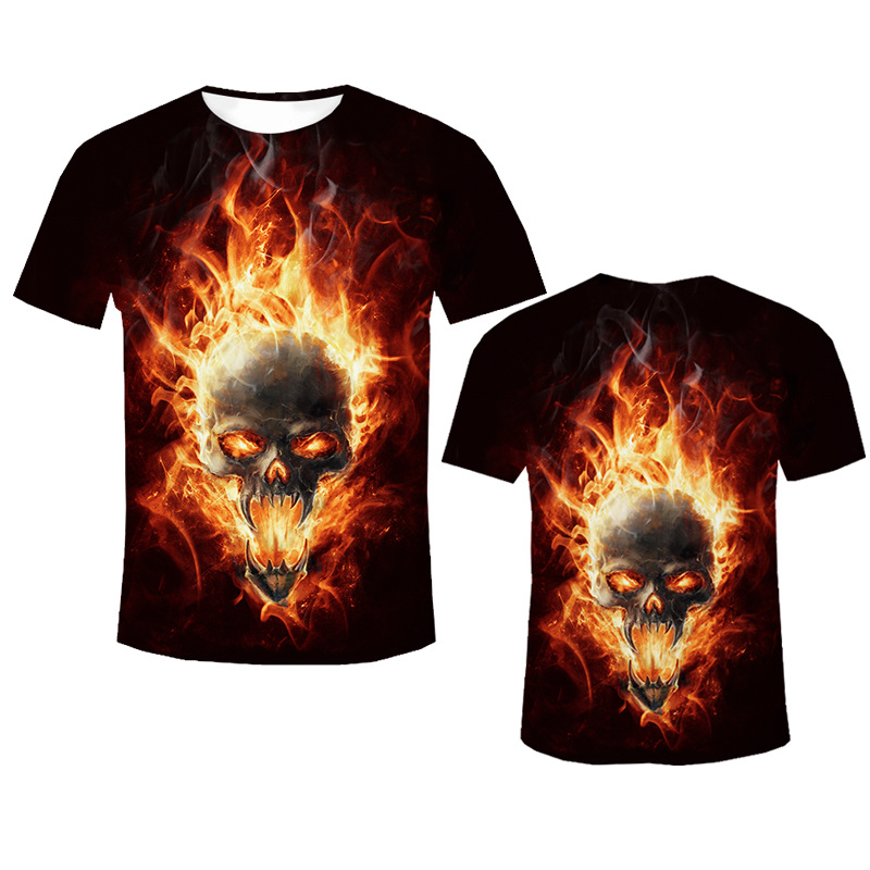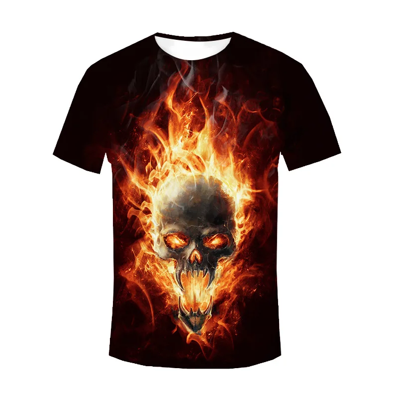 2019 повседневные мужские футболки, модные хлопковые мужские топы с круглым вырезом, Мужская футболка с коротким рукавом, Мужская футболка с 3D принтом, огненный череп