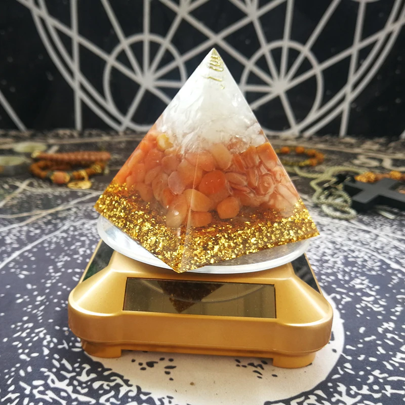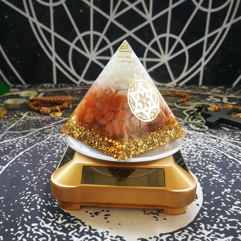 AURAREIKI Orgonite Pyramid Raziel Svadisthara Chakra, увеличивающая мощность, Красный Авантюрин, белый кристалл, украшение пирамиды из смолы