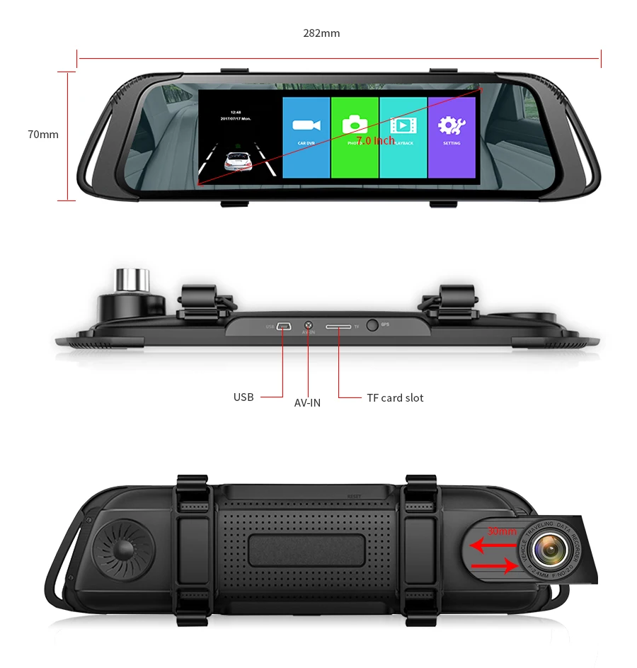 Учитывая, что оригинальное зеркало заднего вида у некоторых клиентов больше, поэтому мы проектируем его с помощью одной гибкой фронтальной камеры, можно регулировать на 3 см больше.
