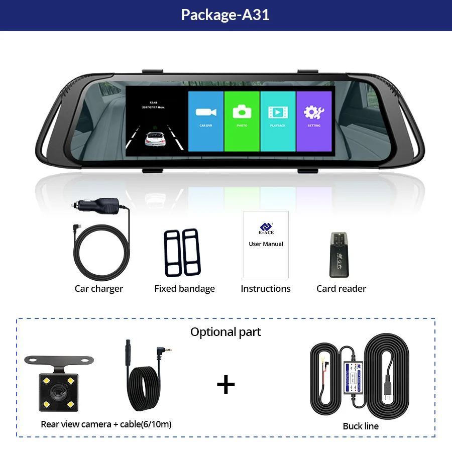 A31 поддерживает два объектива камеры, объектив фронтальной камеры составляет около 170 градусов, а объектив задней камеры-около угол 140 градусов. Поддержка изображения на дисплее, два объектива камеры записываются одновременно, все видео сохраняют в tf-карте. При реверсе видеорегистратор автоматически поворачивается на дисплей заднего вида.