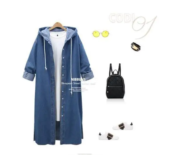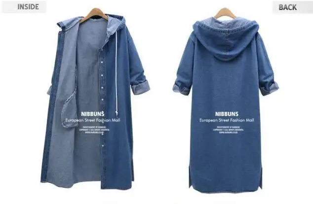 2019 Новая женская джинсовая куртка в европейском и американском стиле с капюшоном и длинными рукавами однобортная Длинная женская куртка-ветровка, пальто