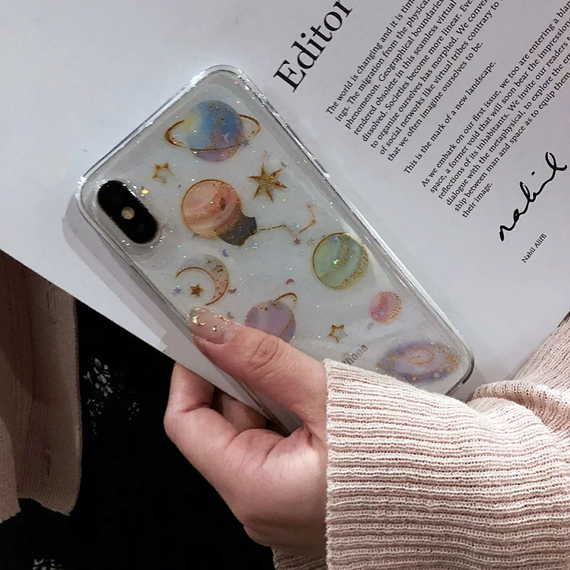 *. Силиконовая планета, звезда, блестящий чехол для телефона для iPhone золото Луна Декор чехол Fundas.
