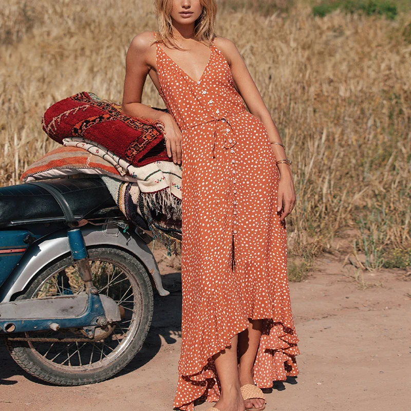 * Предмет ОписаниеО:Лето; пляж; глубокий v-образный вырез; Сексуальный; слинг; Бохо; цветочный; пуговицы; Макси-платье