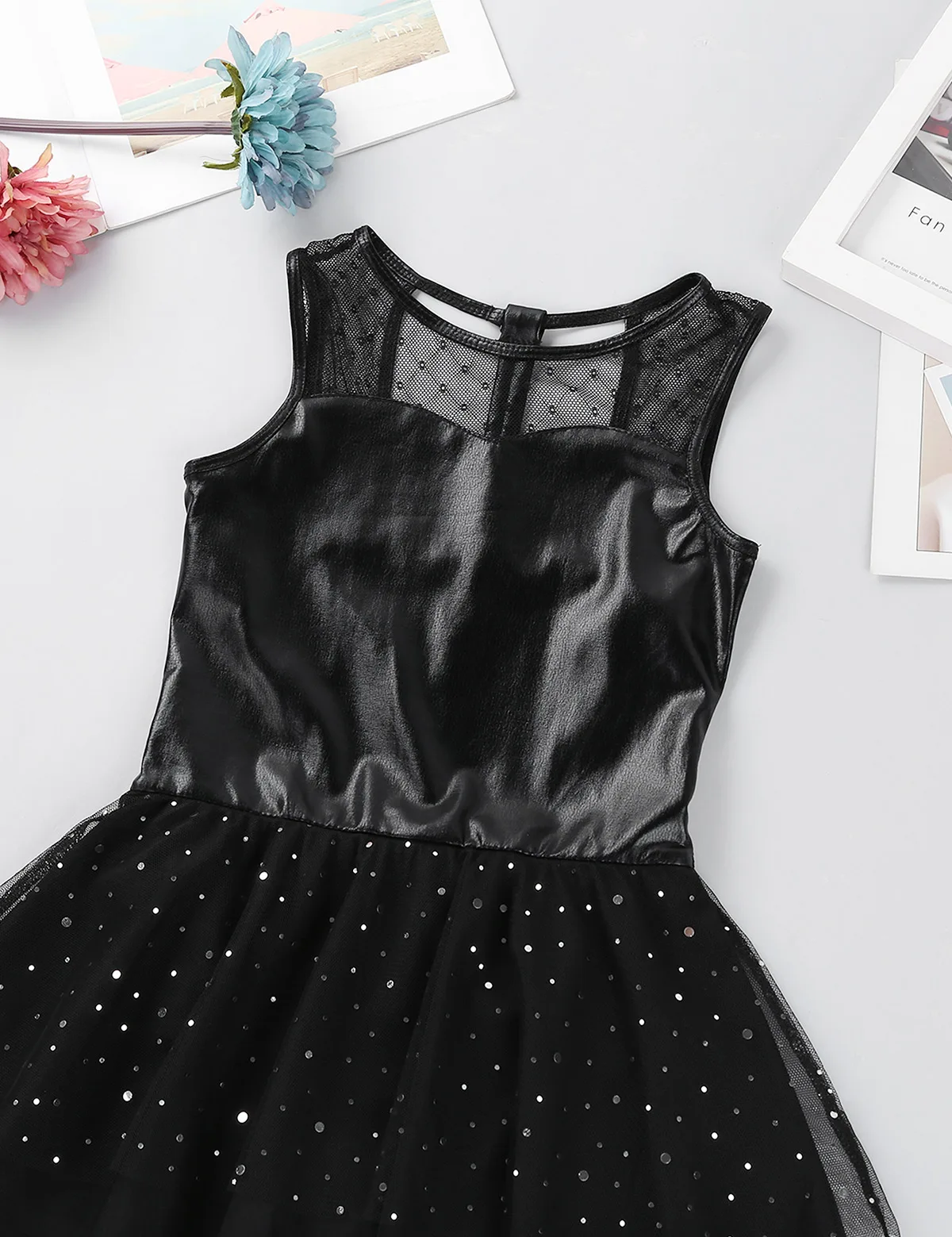 Балетное трико платье изготовлено из полиэстера и сетчатого материала, ручная стирка.