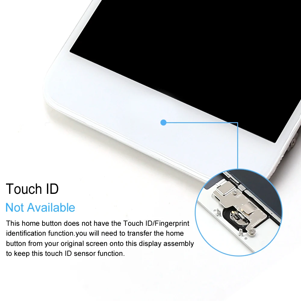 3) важно: эти элементы не имеют функции Touch ID. Функцию сенсорной идентификации будет работать только с вашего телефона Оригинальный механизм кнопки home. Если вам нужна функция Touch ID, вам необходимо будет переносить сборка кнопок с вашего старого дисплея.