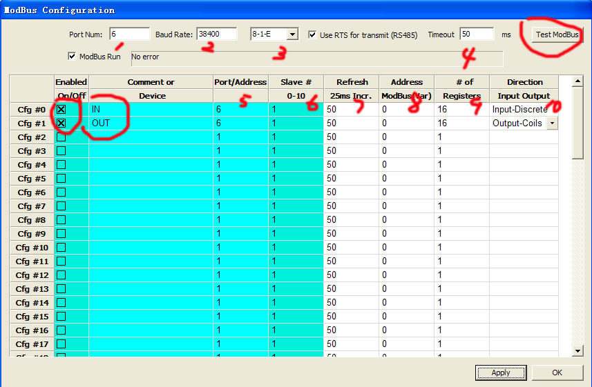 Набор в MACH3 Поддерживаемые настройки плагина ModBus