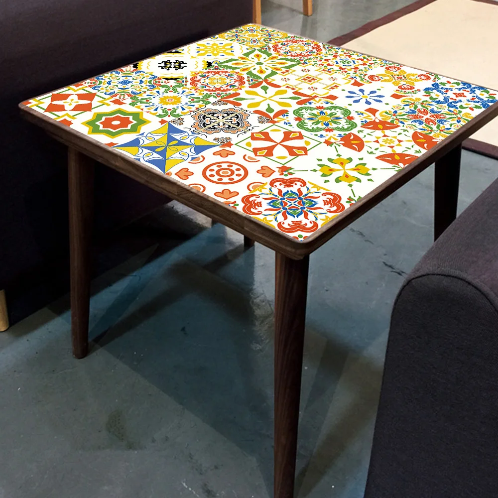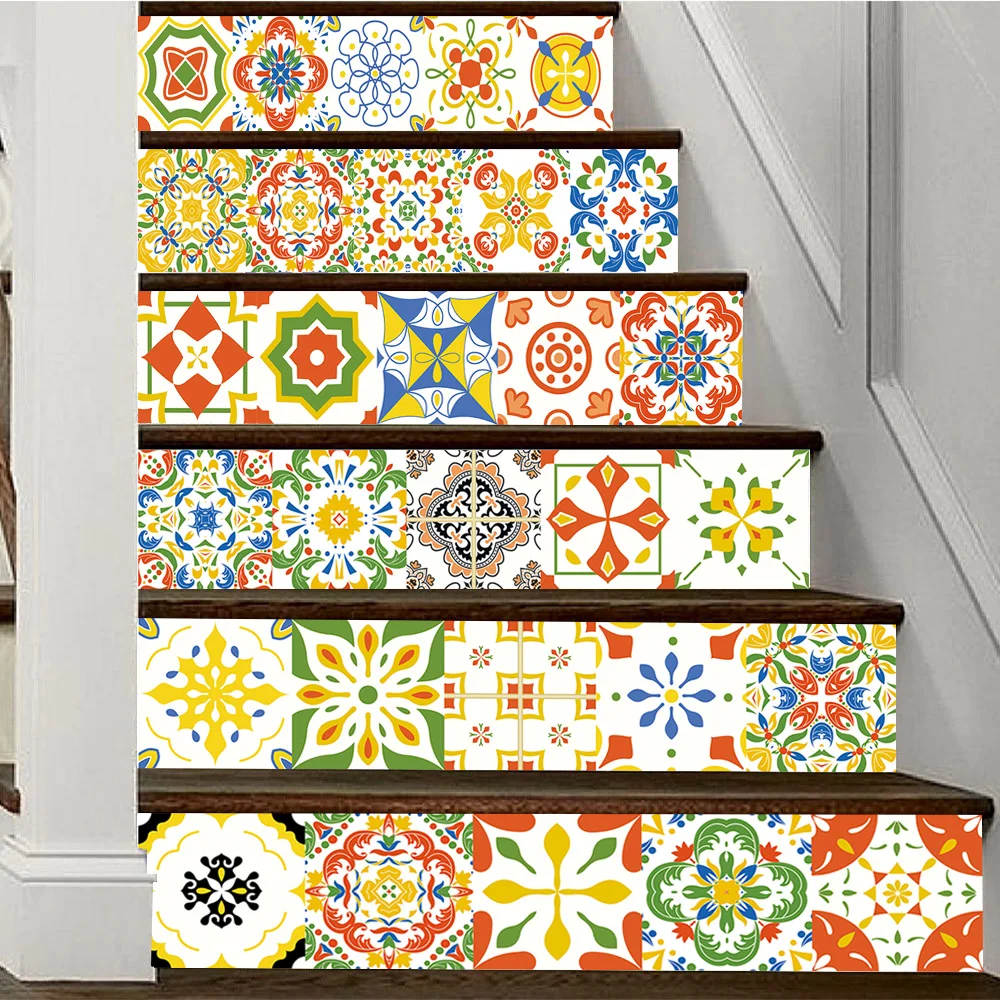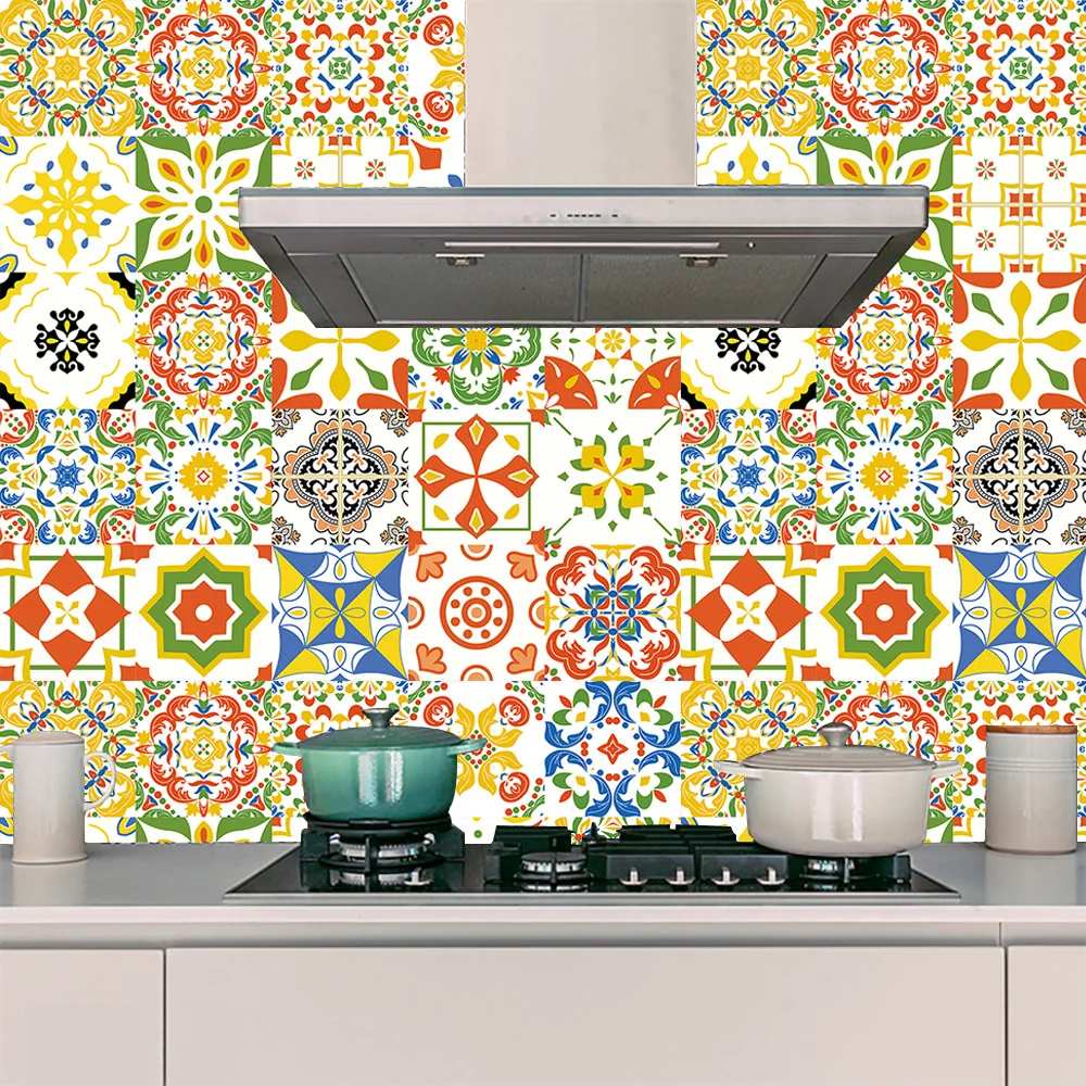 Желтые и красные цветы узор плитка в полоску наклейки на стену Ванная комната Кухня ремонт дома обои водонепроницаемые художественные наклейки на стену