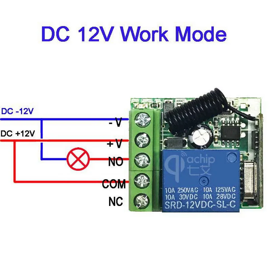 Режим задержки времени: Нажмите кнопку дистанционного управления, реле подключается, от когда отпустите кнопку дистанционного управления, после 5s или 10s или 15s, реле отключается автоматически.