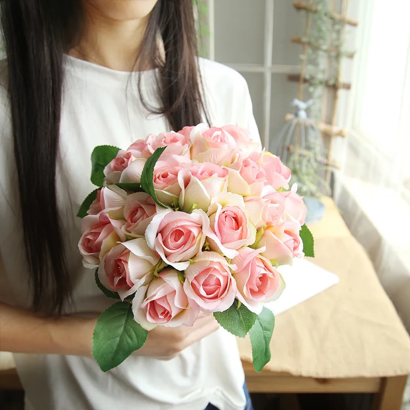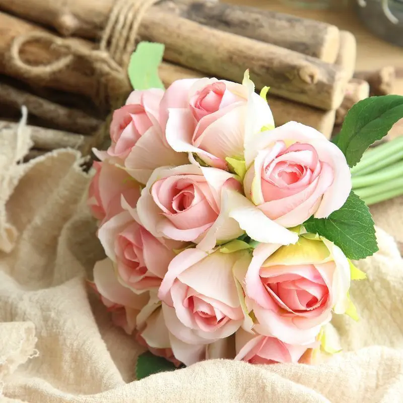 11 головка розы Букет из искусственных цветов для домашнего свадебного украшения Букет