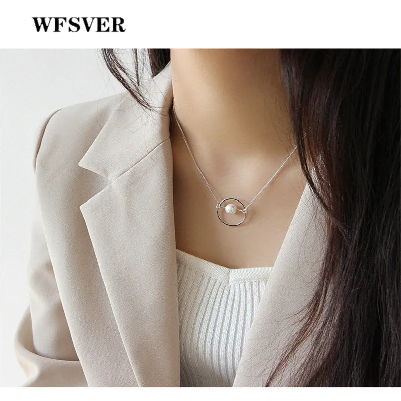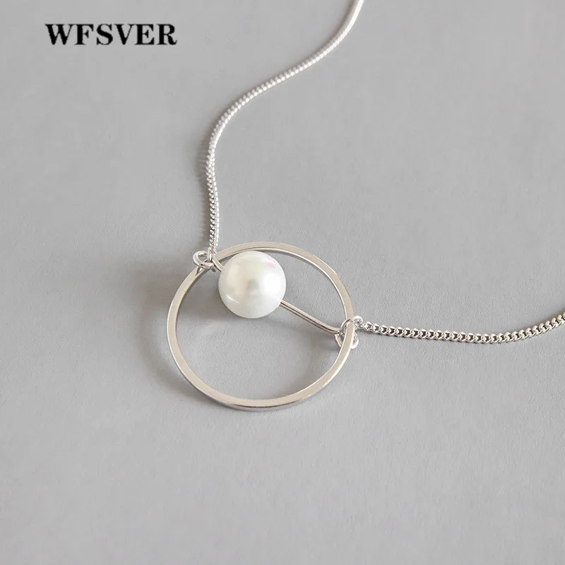 WFSVER 925 стерлингового серебра Круглый кулон с белым жемчугом ожерелье для женщин персонализированное ожерелье с подвеской прекрасный подарок ювелирных изделий