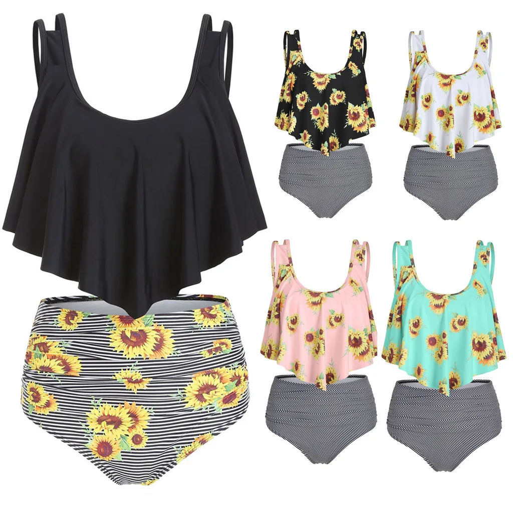 Женский комплект бикини из двух предметов с оборками и высокой талиейТанкини костюм