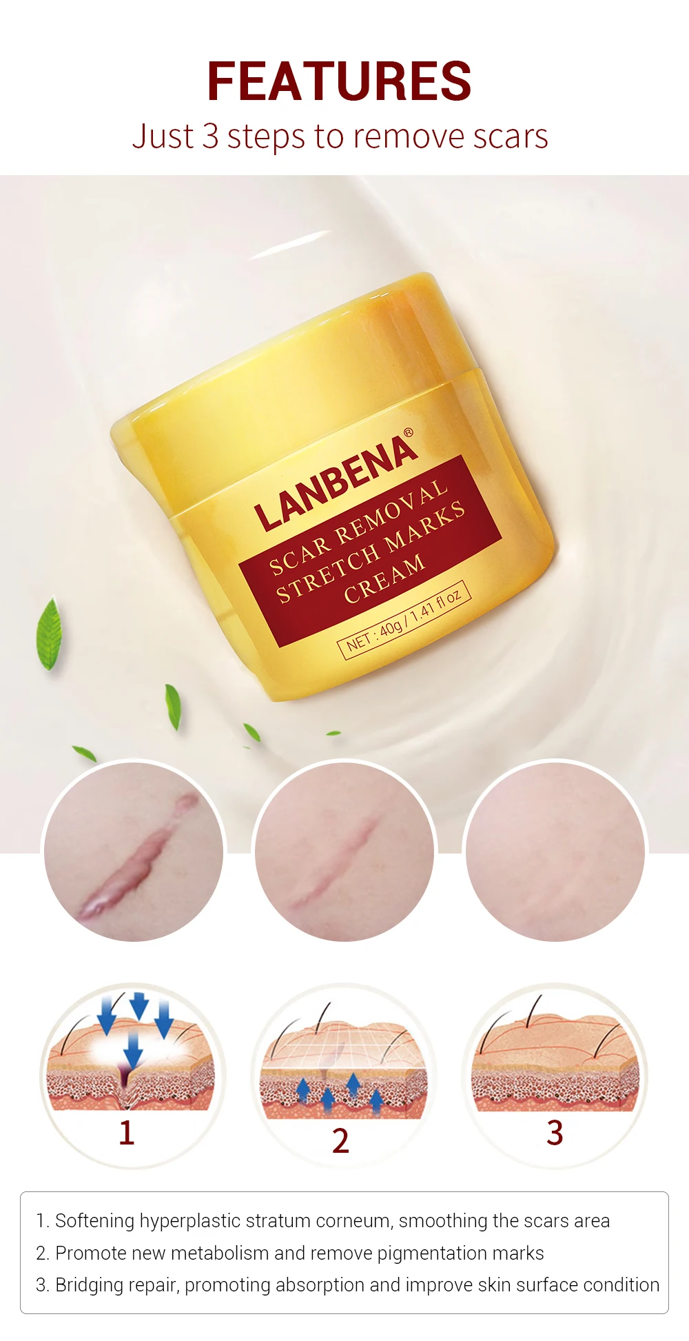 Крем для удаления шрамов LANBENA формируется с травяным экстрактом, который может уменьшить