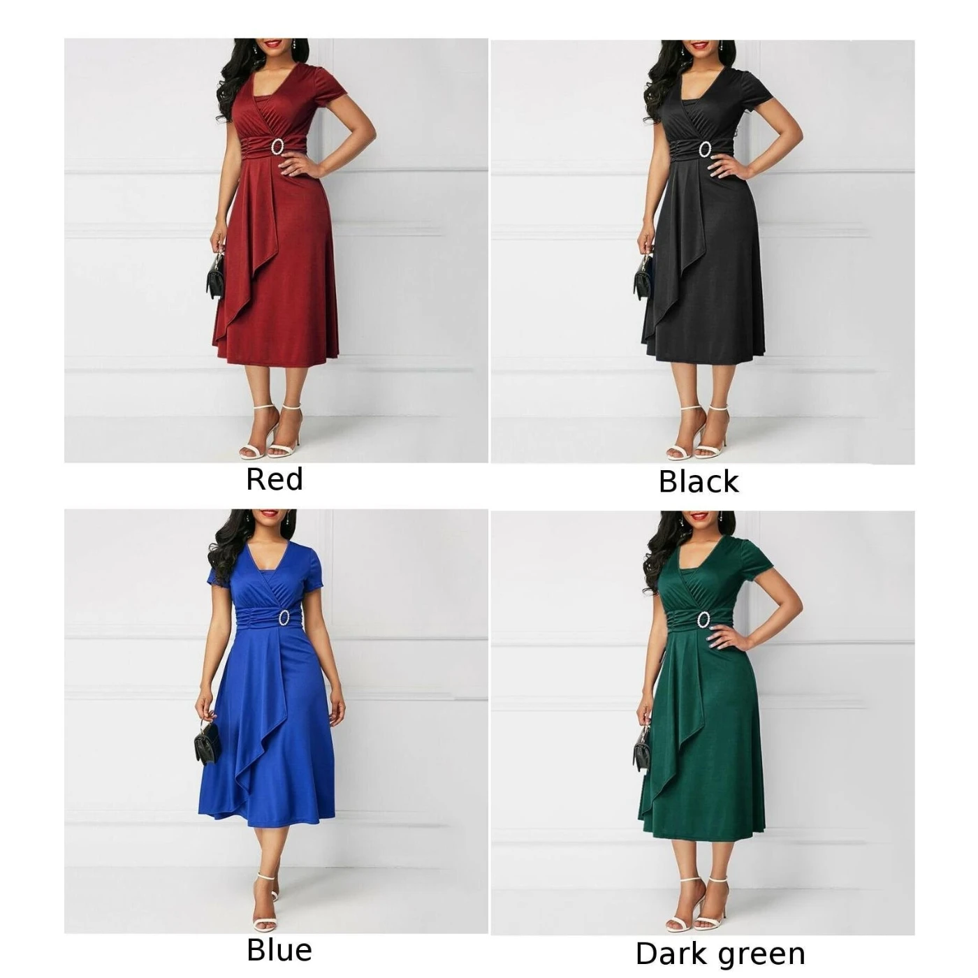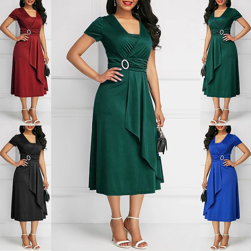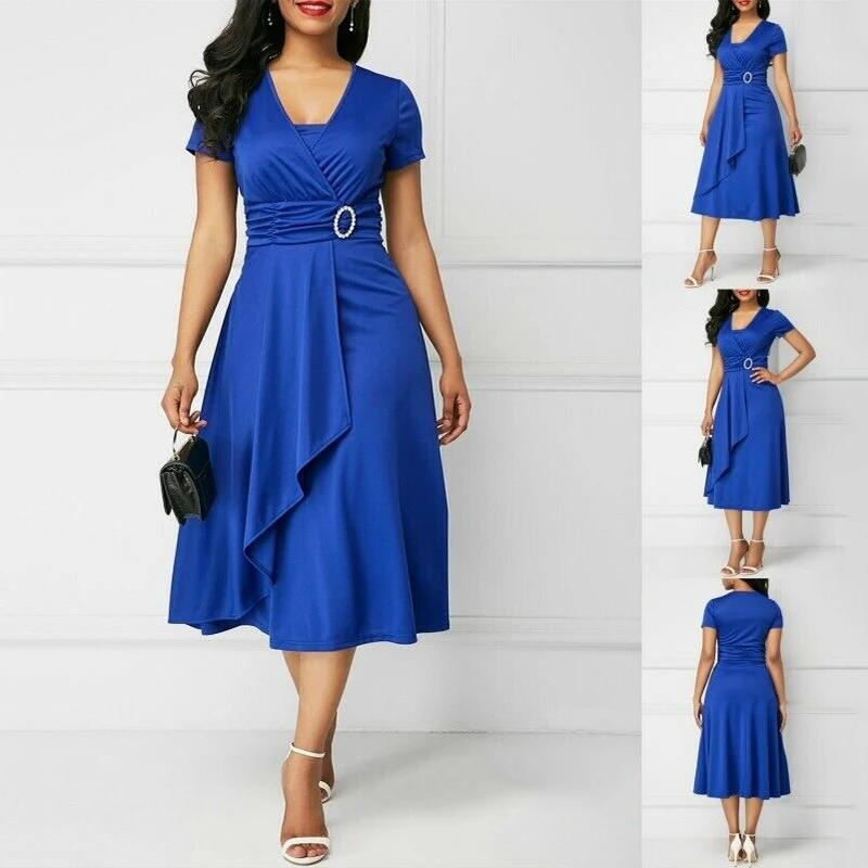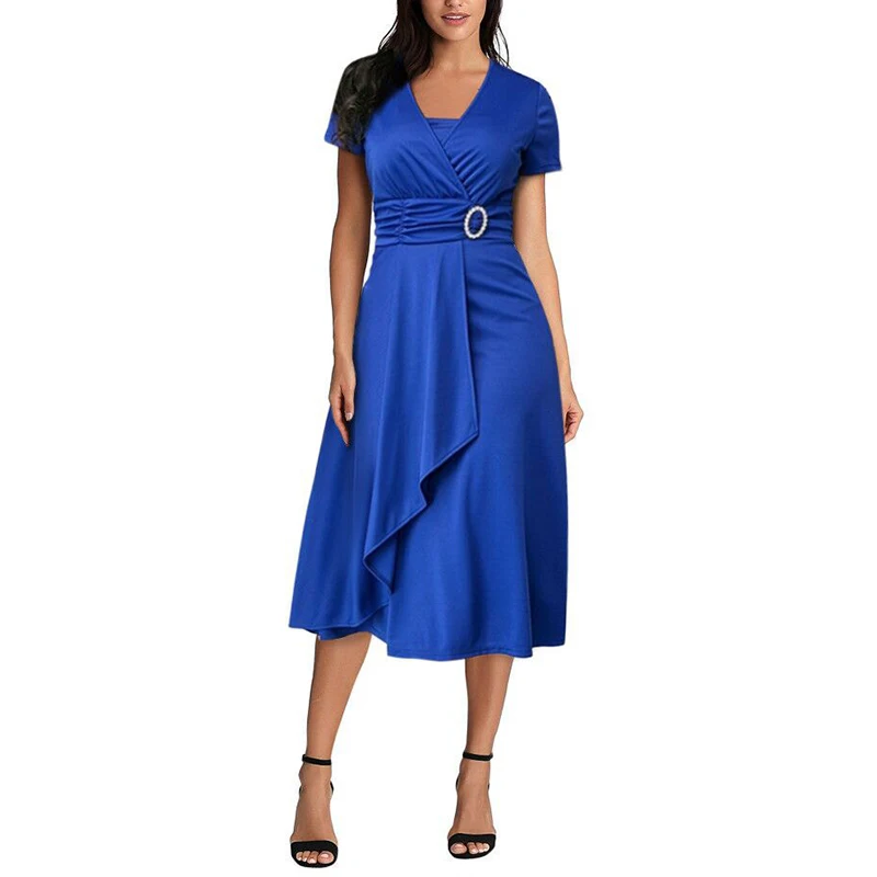 * Описание товара:Короткий рукав, асимметричный, длина по колено, платье