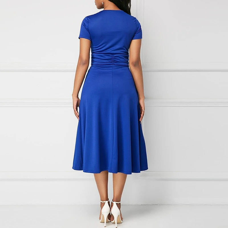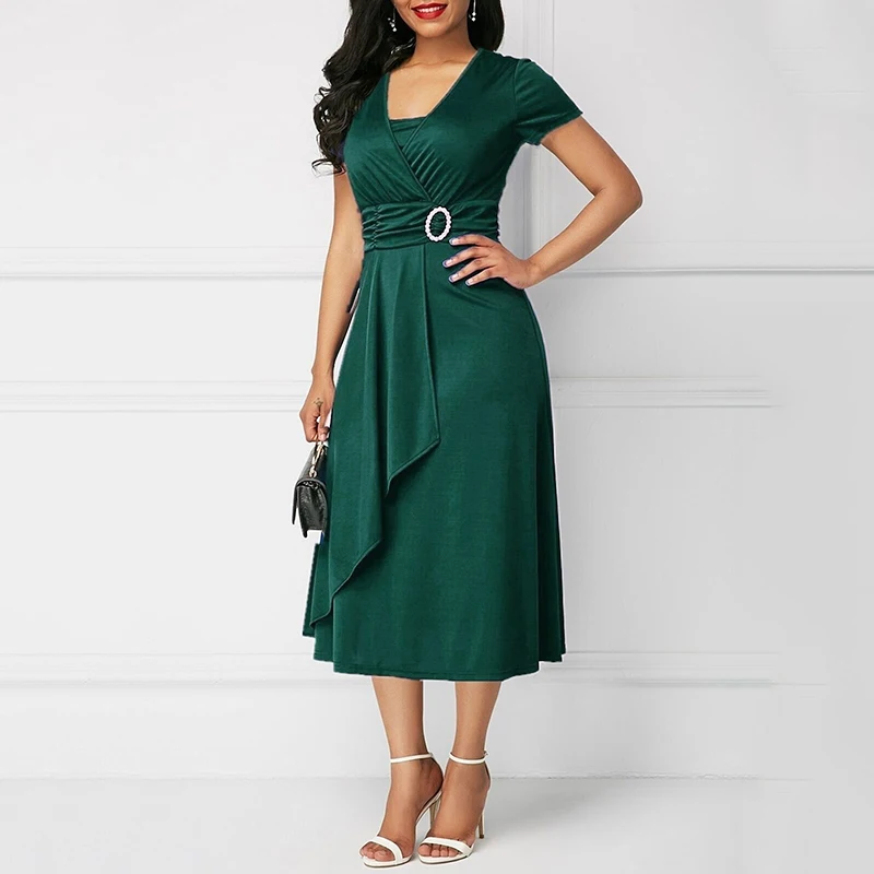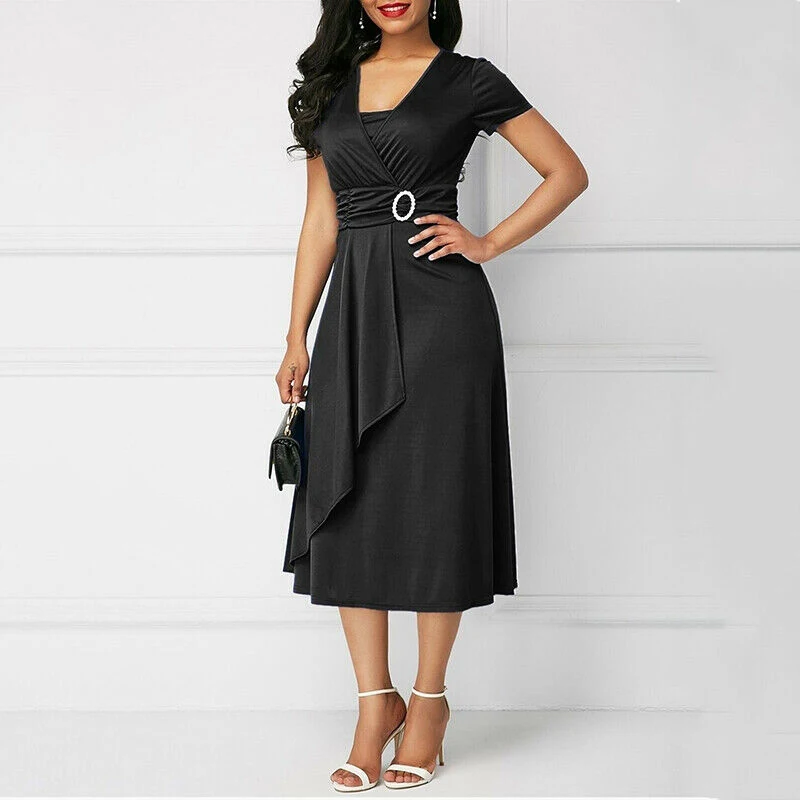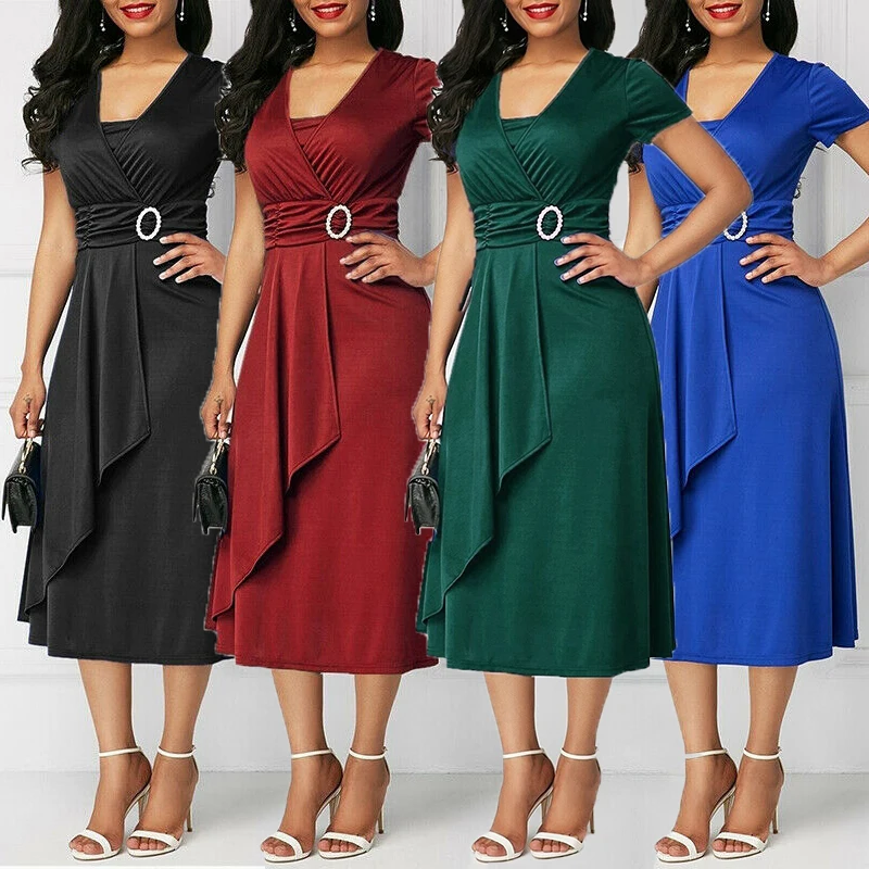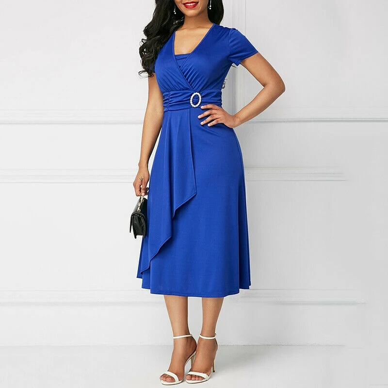 * Описание товара:Короткий рукав, асимметричный, длина по колено, платье