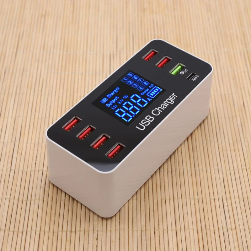 Описание товара Характеристики: Модель: A9 + Вход: 100-240 В ~ 50-60 Гц 0.8A QC3.0:DC5V/3A, 9V/2A, 12V/1.5A TYPE-C 5V ~ 3A Напряжение на выходе USB: 5V ~ 3.5A Общая мощность: 5 В ~ 8 А (макс.) Смарт USB зарядное устройство с ЖК-дисплеем LCD ток, напряжение, мощность Цифровой точный дисплей; Поддерживает различные протоколы зарядки USB, каждый протокол зарядки автоматическое переключение: Защита от короткого замыкания на выходе; Защита от перегрузки по току; Защита от перегрева; Защита от перенапряжения; Защита от молнии. Внимание: Только для использования в помещении. Избегайте удара электрическим током, который подходит только для использования в сухой и водонепроницаемой среде. Не нажимайте на свинец или не подключайте к розетке. Не разбирайте и Не стучите зарядное устройство. Прекратите использовать зарядное устройство при покрытии или повреждении свинца. Особенности: 1. Сильная совместимость. Супер Совместимость, может заряжать IPAD, IPHONE, SAMSUNG и другие мобильные телефоны и другие бренды мобильных телефонов; Используйте его Может легко достичь быстрой зарядки 2.1A (IPAD) 2, удобный и практичный. Просто подключите предыдущий шнур питания переменного тока, чтобы обеспечить питание на подключенный мобильный телефон, или одновременно зарядите несколько мобильных телефонов. Не нужно заряжать более одного мобильный телефон для зарядки розетки; И он оснащен выделенным переключателем питания для выключения входного источника питания высокого напряжения. 3, умный и удобный. Новейшее использование цифрового продукта для зарядки тока автоматическая интеллектуальная функция обнаружения, тесно защищает ваши mp3, mp4, IPDA, DV, hand Цифровые мониторы, такие как компьютеры и цифровые камеры, значительно повышают безопасность и срок службы продукции. 4. Зеленый и охрана окружающей среды. Надежная совместимость, неограниченная зарядка, Избегайте использования нескольких зарядных устройств. Используйте разъем для зарядки от переменного тока до USB Заряжайте устройство, которое заряжает usb-кабель. Для MP3, MP4, DV, car Bluetooth hands-free, различных мобильных телефонов, цифровой фотографии При зарядке всех цифровых продуктов мощностью 5 в больше не сложно настроить! 5, ЖК-дисплей в режиме реального времени состояние зарядки