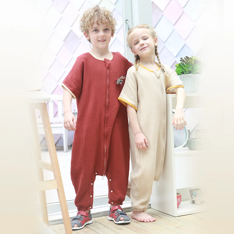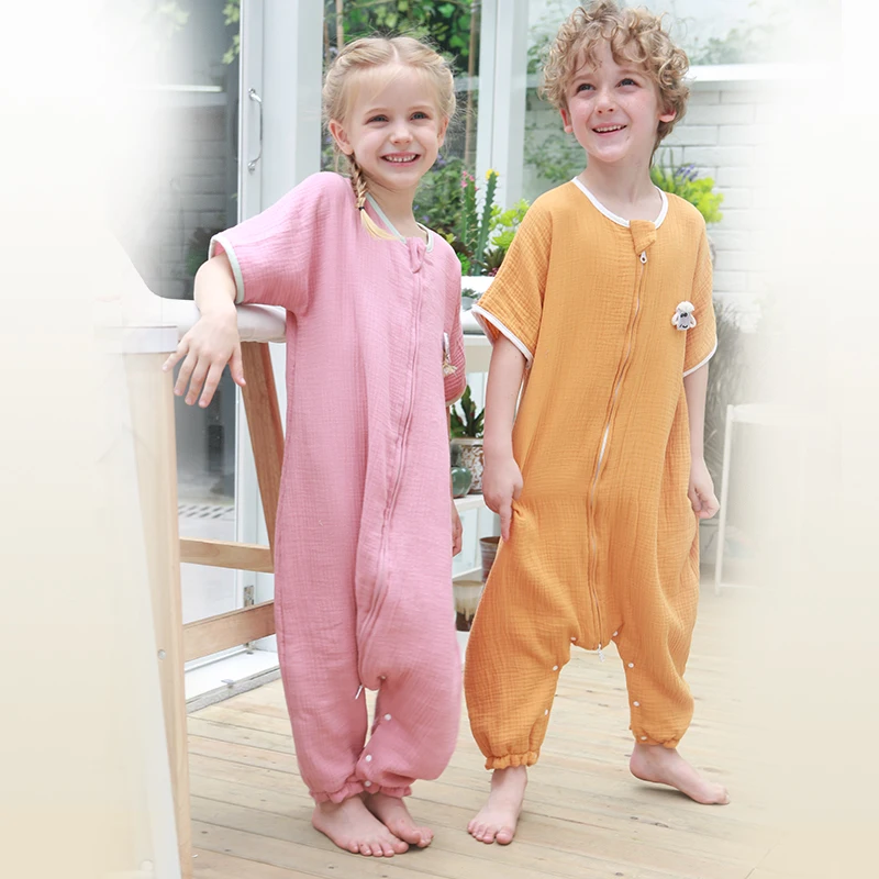 Летний сетчатый спальный мешок из чистого хлопка с раздельными штанинами, Детская Пижама с короткими рукавами и кондиционерами, детское стеганое одеяло (первые четыре и два)