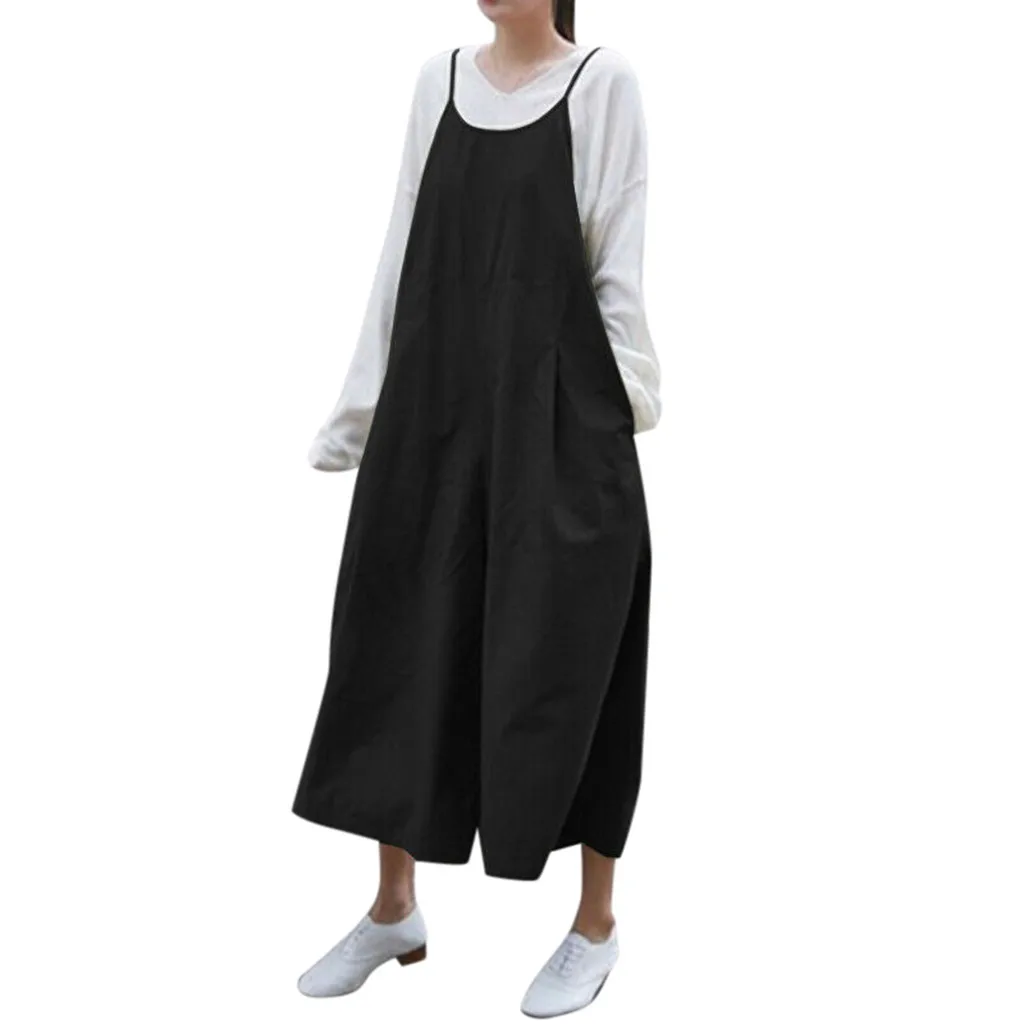 Женские летние однотонные повседневные свободные длинные широкие комбинезоны с карманами