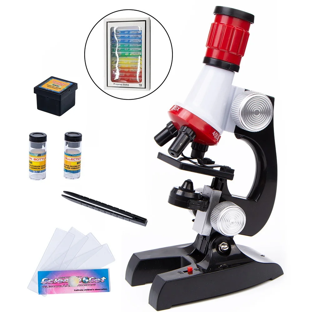 Структура: 1. Откройте дверцу батарейного отсека после Отвинчивания защитного винта. 2. Вставьте две батарейки AA, как указано в нижней части отсека. 3. Верните защитный винт. 4. Поднимите объективную линзу как можно больше с помощью грубой регулировки. 5. Поместите слайд с тканью или телом, которые вы хотите наблюдать на сцене, Фиксируется под двухступенчатой клипсой. 6. Включите светодиодный светильник. 7. Отрегулируйте фокус с помощью грубой регулировки и отрегулируйте окуляр на Зрение, мягко поворачивая его. 8. Отрегулируйте светильник с помощью ручки управления. Слишком большой светильник, чтобы раздавить Технические характеристики: Коэффициент увеличения: 100X, 400X, 1200X Аккумулятор: 2 батарейки AA (не входят в комплект) Посылка-лист: Набор 1: 1 микроскоп (аккумулятор не входит в комплект) 2 х бутылки для сбора 5 x слайдов 1 лоток для этикеток Пинцет-1 шт. 12 x слайдов Набор 2: 1 микроскоп (аккумулятор не входит в комплект) 2 х бутылки для сбора 5 x слайдов 1 лоток для этикеток Пинцет-1 шт.