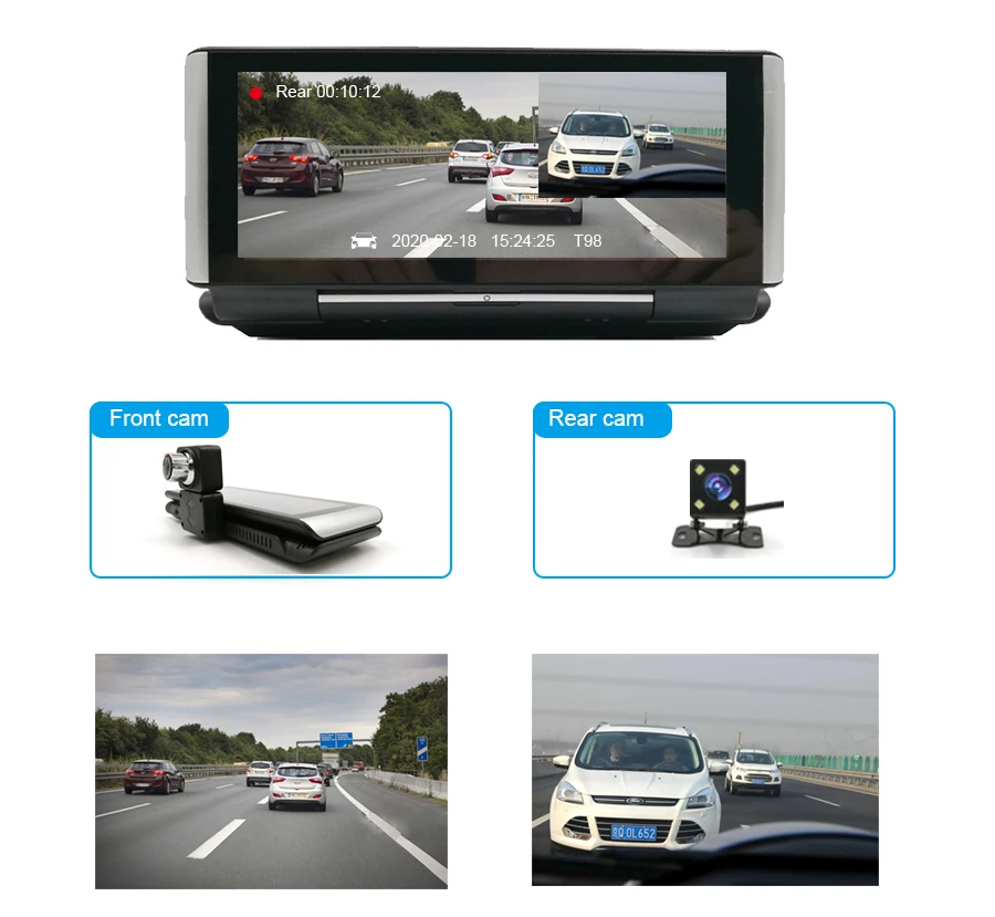 Запись Full HD 1080P и запись с двумя объективамиБолее качественные изображения помогают определить важные детали, такие как номерные знаки, драйверы и дорожные особенности, которые могут подтвердить вашу невинность.Этот автомобильный видеорегистратор имеет фронтальную камеру 1080P и заднюю камеру 720P, что позволяет одновременноЗаписывает видео с двух разных углов и имеет специальный два раздельных дисплея.