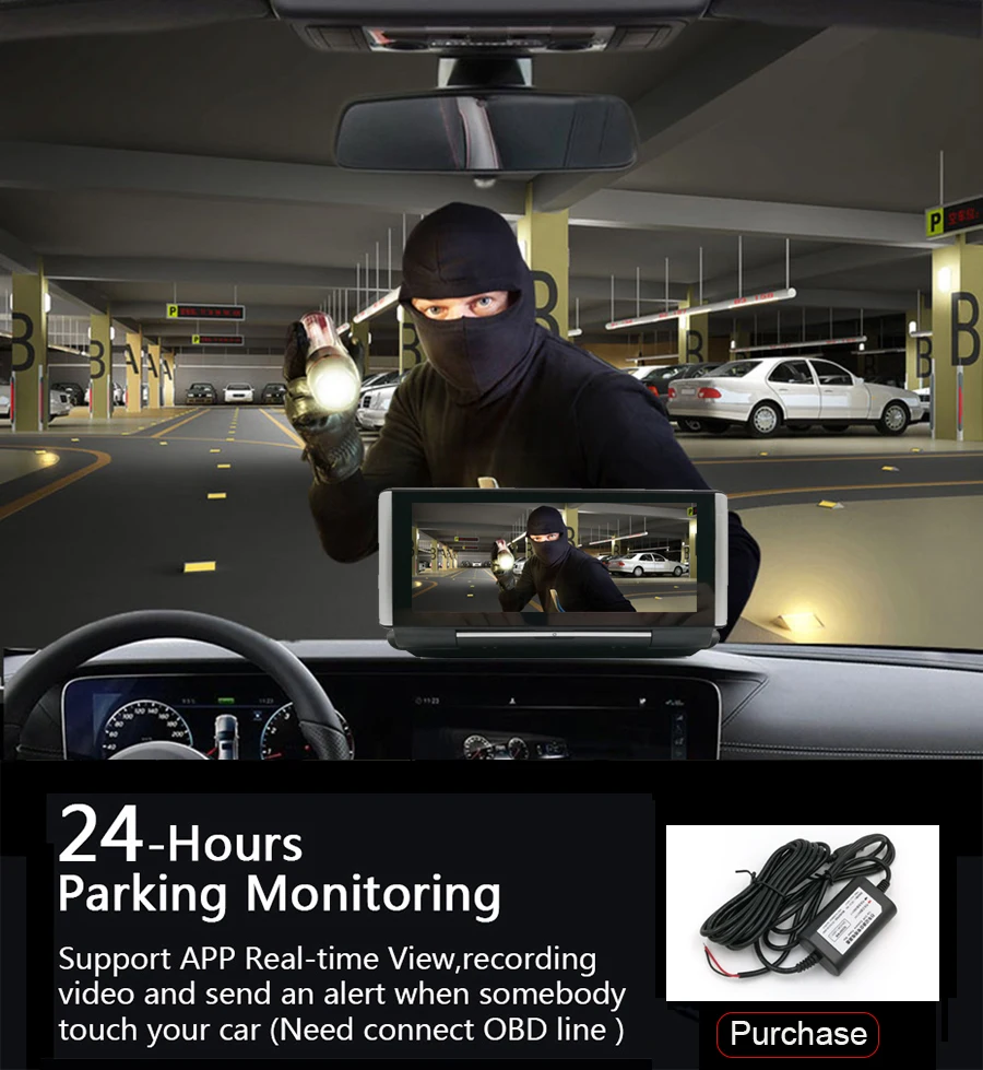 24H монитор парковкиКогда кто-то рядом с вашим автомобилем или автомобилем начинает двигаться, автоматически включается и начинает запись при обнаружении любого удара или столкновения, устройство автоматически записывает в течение нескольких секунд, убедитесь, что 24hr парковочная защита.Внимание: он должен быть соединен твердой проволокой