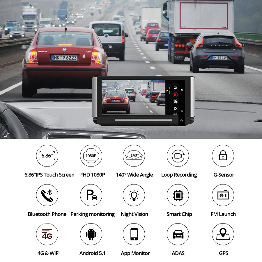 Полноразмерный экран 6,86 дюймаНа дисплее используются новые технологии и технологии, чтобы точно следовать изгибам дизайна, вплоть до элегантных закругленных углов, для того, чтобы обеспечить 100% просмотр изображения будет отображаться в этом 10 дюймов Полностью зеркальная поверхность экрана.С AHD задней камерой, делает вождение заднего вида более широко, это тройной широкий вид, если сравнить с традиционным зеркалом.GPS навигацияSygic или Navitel или google Maps GPS навигация имеет поле поиска, что позволяет легко найти адреса. Индикатор ограничения скорости-устройство отображает ограничения скорости для большинства основных дорог.(Мы установим приложение Navitel GPS для российских клиентов; Мы устанавливаем приложение Sygic GPS для европейских, американских азиатских клиентов)Если вы хотите использовать с яндексом или Waze, вы можете скачать с google market или browser или связаться с нами, чтобы получить приложение Яндекса.4G модуль для sim-карты (Интернет) + WIFI модуль маршрутизатор = серфинг быстрееБлагодаря sim-карте 4G и встроенному Wi-Fi, независимо от того, где вы едете, вы будете наслаждаться удовольствием от интернет-серфинга, что делает его возможным для онлайн-навигации/музыки/кино и т. Д.Примечания: перед размещением заказа, пожалуйста, проверьте, находится ли ваша локальная сеть sim-карт ниже полос или нет:4G:TD- SCDMA:2100(B34/)1900(B39)WCDMA:2100(B1).LTE:FDD,2100(B1)/1800(B3)TDD:2600(B38)1900(B39)2300(B40)/2500(B41)В противном случае Автомобильный видеорегистратор не будет идентифицировать вашу sim-карту.Удаленный монитор в режиме реального времениБлагодаря уникальному мобильному приложению удаленного монитора «Car Assist» и подключению к Интернету, вы сможете дистанционно контролировать путь вождения автомобиля и то, что произошло вокруг вашего автомобиля, независимо от того, где вы находитесь.ADAS Plus делает вождение более безопасным [только версия 4G поддерживает, версия 3G не поддерживает]Усовершенствованные системы сигнализации вождения (LDWS/ FCWS/FVMA) , это полезные системы сигнализации, чтобы сохранить безопасность вашего вождения.Функция громкой связи BluetoothБлагодаря bluetooth hands-free, После сопряжения bluetooth между видеорегистратором и смартфоном, вы можете совершать и принимать звонки непосредственно с самого зеркального видеорегистратора со встроенным микрофоном и динамиком.Функция передачи FMНравится ли вам слушать музыку во время вождения? Благодаря функции fm-передачи, вы можете легко синхронизировать зеркальную dvr музыку с вашим автомобильным аудио.