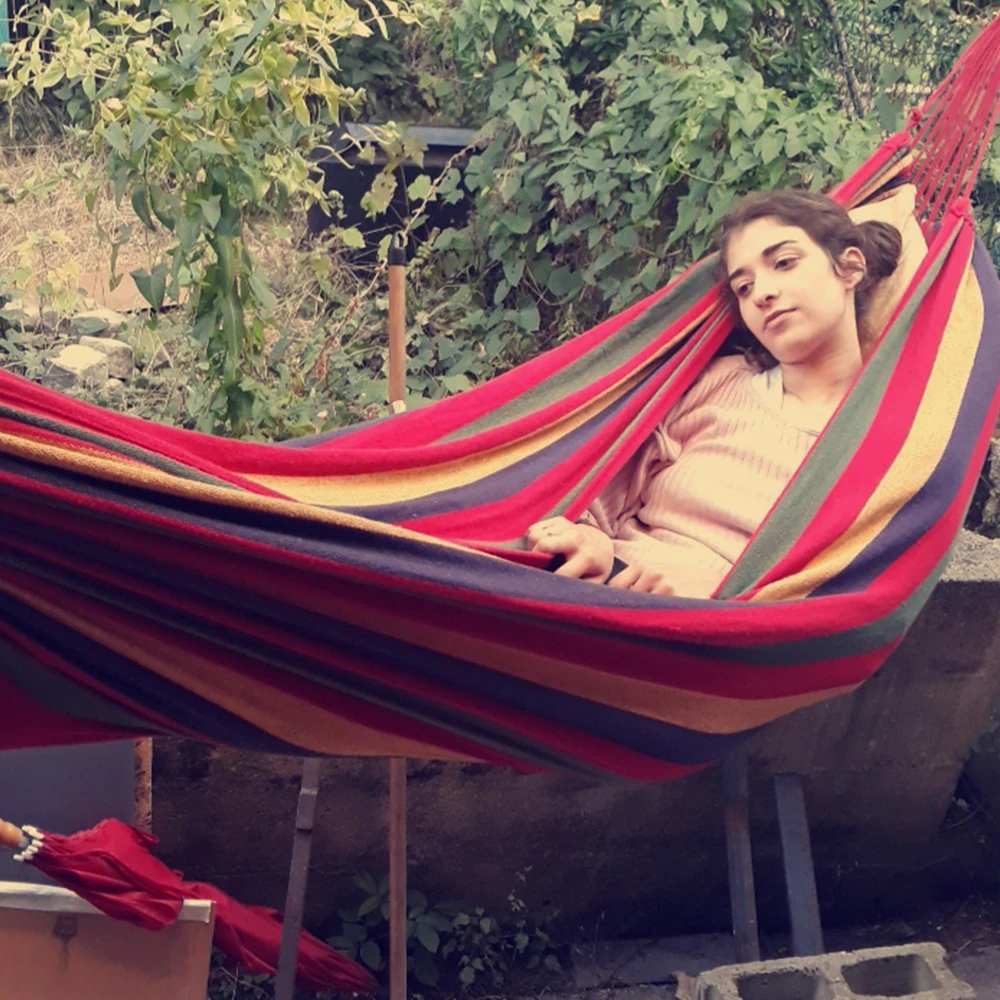 Портативный гамак, открытый гамак для сада, спорта, дома, путешествия, кемпинга, качели, холст, полоса, подвесная кровать, гамак, красный, синий 280x80 см