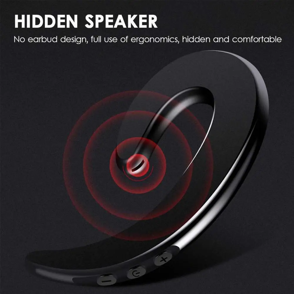 【Принцип работы 】 Через пневматическая вибрация, костная проводящая гарнитура делает звук передает на внешний канал, барабанную перепонку, ушную кость, ушную трубку и кохлеар, затем на слуховые нервы. В то время как костная проводимость наушников проводит динамик через кость, он передает звук на кость возле внешнего канала, а затем на слуховой нерв. 【Безболезненный подвесной дизайн 】 Подвесная конструкция, не нужно вставлять в ухо, избегать заболеваний ушей, вызванных потом в ушах при выдержке, без затычек для ушей, не в ухо, без боли 【Нет демпфер барабанной перепонки 】 Ношение этих наушников, музыка будет вестись до вашего внутреннего уха через кости вашего черепа, чтобы избежать возникновения повреждения уха и потери слуха, звук не передает через внешний канал и барабанную перепонку. 【Соединение bluetooth и сильная совместимость 】 Bluetooth 4,1 идеально совместим практически со всеми мобильными устройствами с поддержкой bluetooth, такими как, для iPhone, смартфонов, планшетных ПК, ноутбуков и т. д. Супер легкое и быстрое сопряжение с вашим смартфоном или другим bluetooth-устройством для высококачественной стереофонической музыки, фильмов и общения. 【Многоточечное соединение и звонки без рук Беспроводная технология bluetooth 4,1 + EDR обеспечивает высокое качество стереозвука и стабильную производительность. Наслаждайтесь музыкой без проводов, легко переключаясь между звонками и музыкой, вы не пропустите ни одного входящего звонка во время прослушивания музыки. Он поддерживает звонки без рук и голосовые подсказки, что облегчает вашу жизнь. 【Ежедневное Водонепроницаемость 】 Когда вы ходите в дождь, вы можете наслаждаться музыкой свободно, потому что вы носите эти водонепроницаемые наушники 【Длительный срок службы батареи 】 Низкое потребление, со встроенным полимерным аккумулятором 75 мА · ч, он обеспечивает до 3 часов непрерывной музыки и 3 часов разговора. Время работы в режиме ожидания составляет около 160 часов. 【Светильник-весовой дизайн Удобно носить, весит всего 8 г, как светильник, как перо
