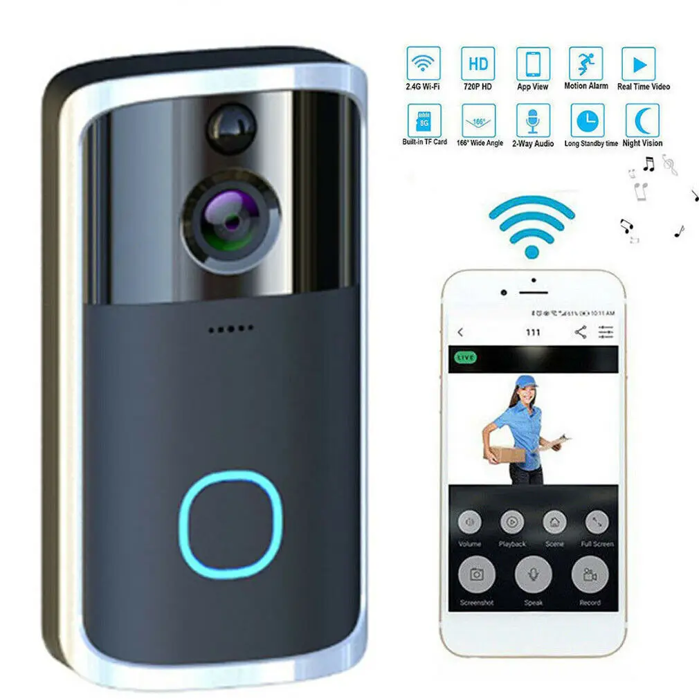 Этот Дверной звонок wifi может подключаться к домашнему WiFi и достигать двустороннего домофона между дверным звонком и мобильным телефоном. Когда Посетитель нажимает на дверной звонок Звук активирован, и камера начнет отправлять изображения в реальном времени и звонить на сотовый телефон. Пользователь получит вызов, чтобы проверить, кто посетитель, а затем связаться с посетителем и удаленно разблокировать дверь.